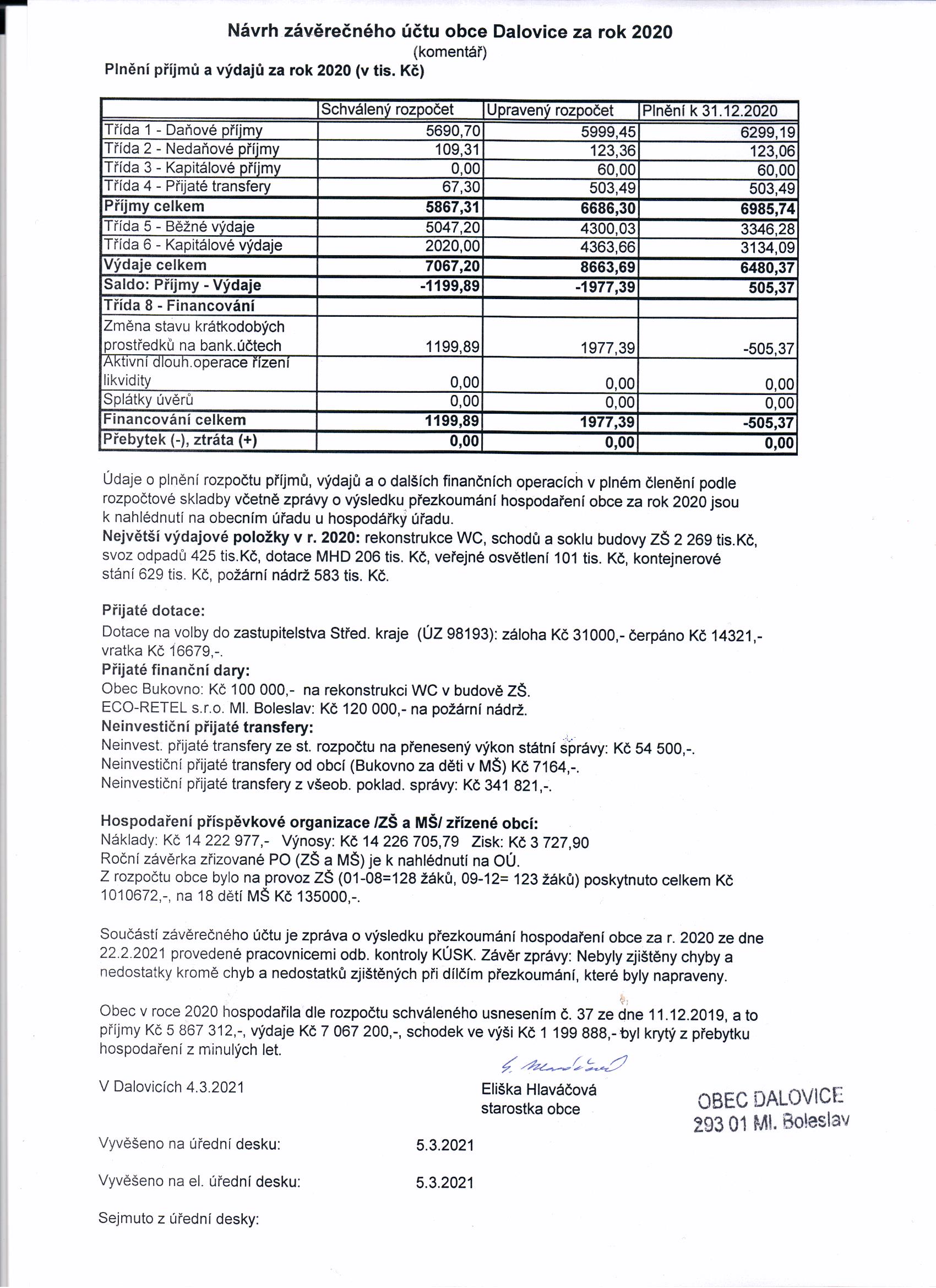 Download... Návrh závěrečného účtu 2020 - komentář