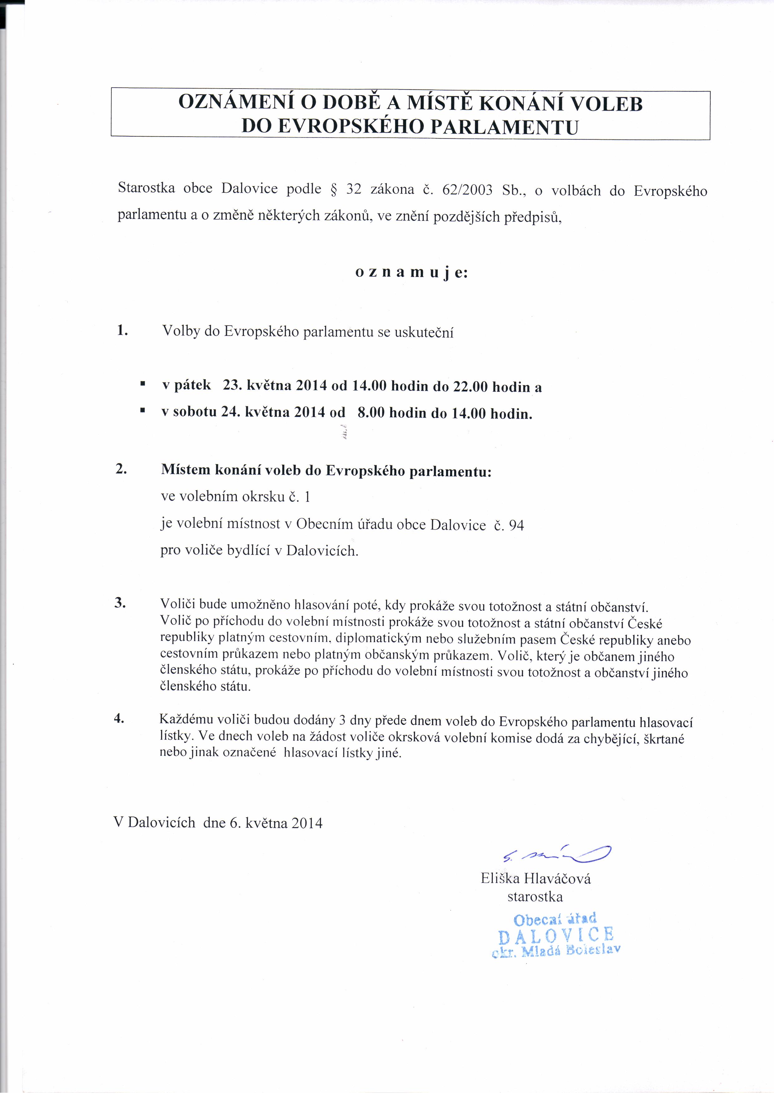 Download... Oznámení o době a místě konání voleb do EP