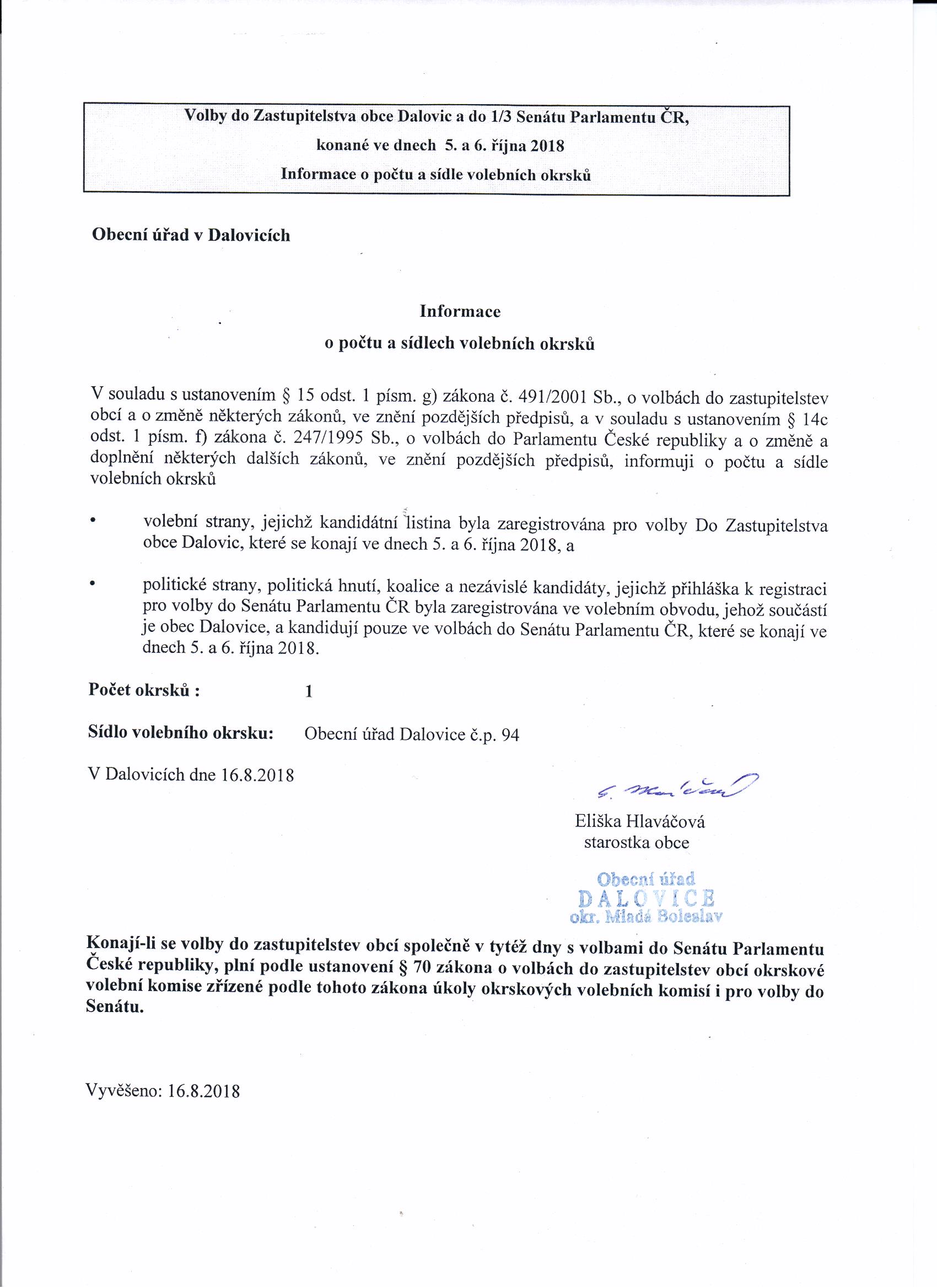 ÚŘEDNÍ DESKA OBCE DALOVICE