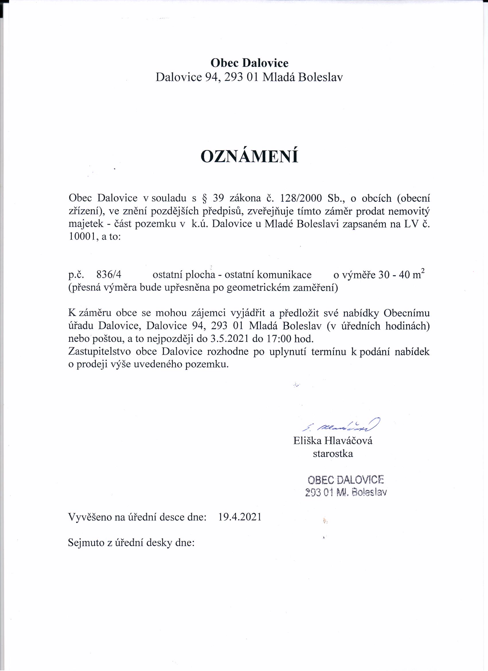 Záměr obce - prodej pozemku záměr-prodej pozemku 2022 |