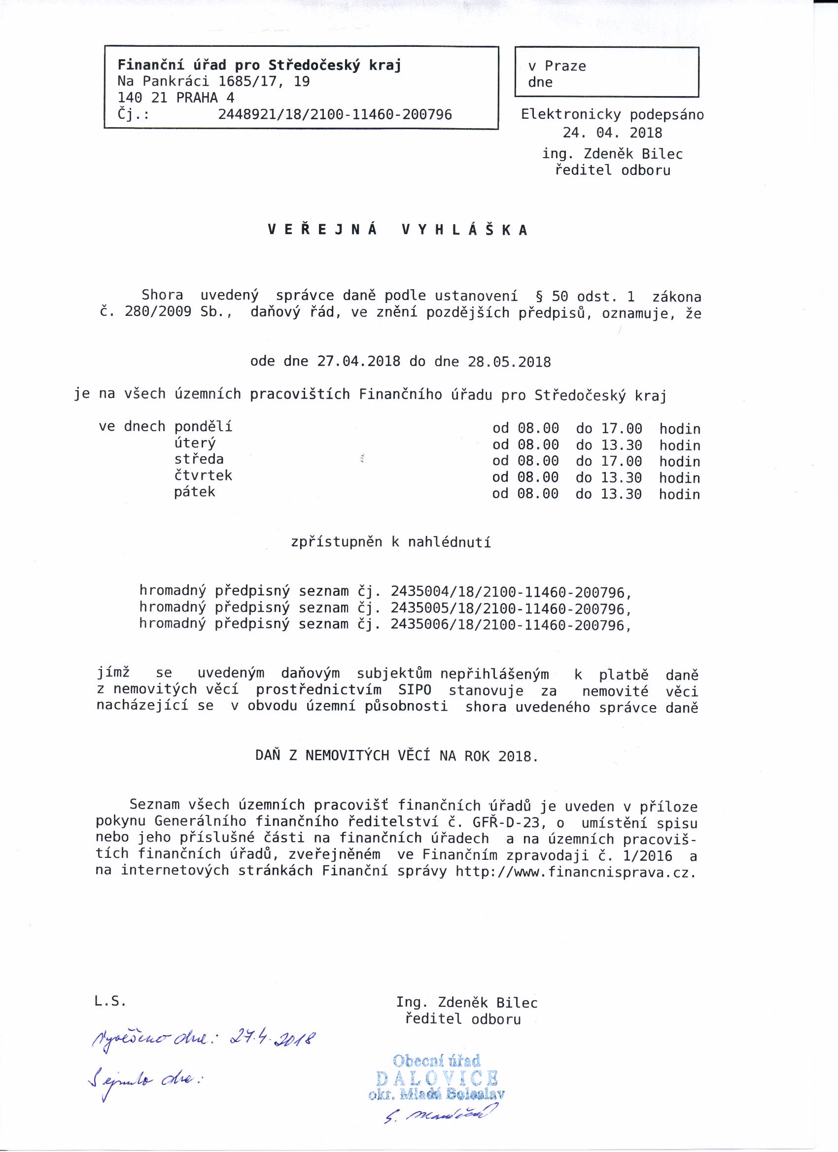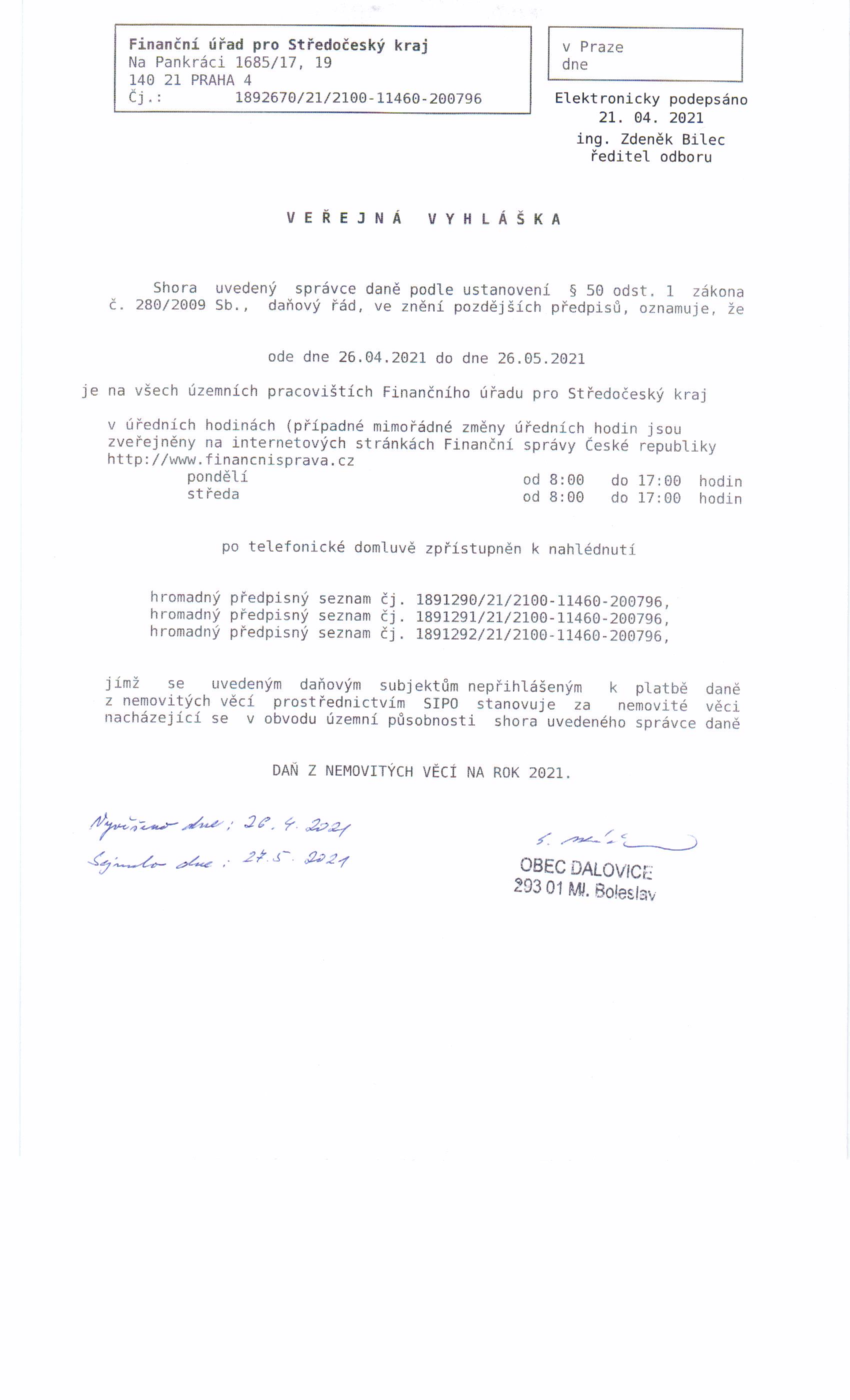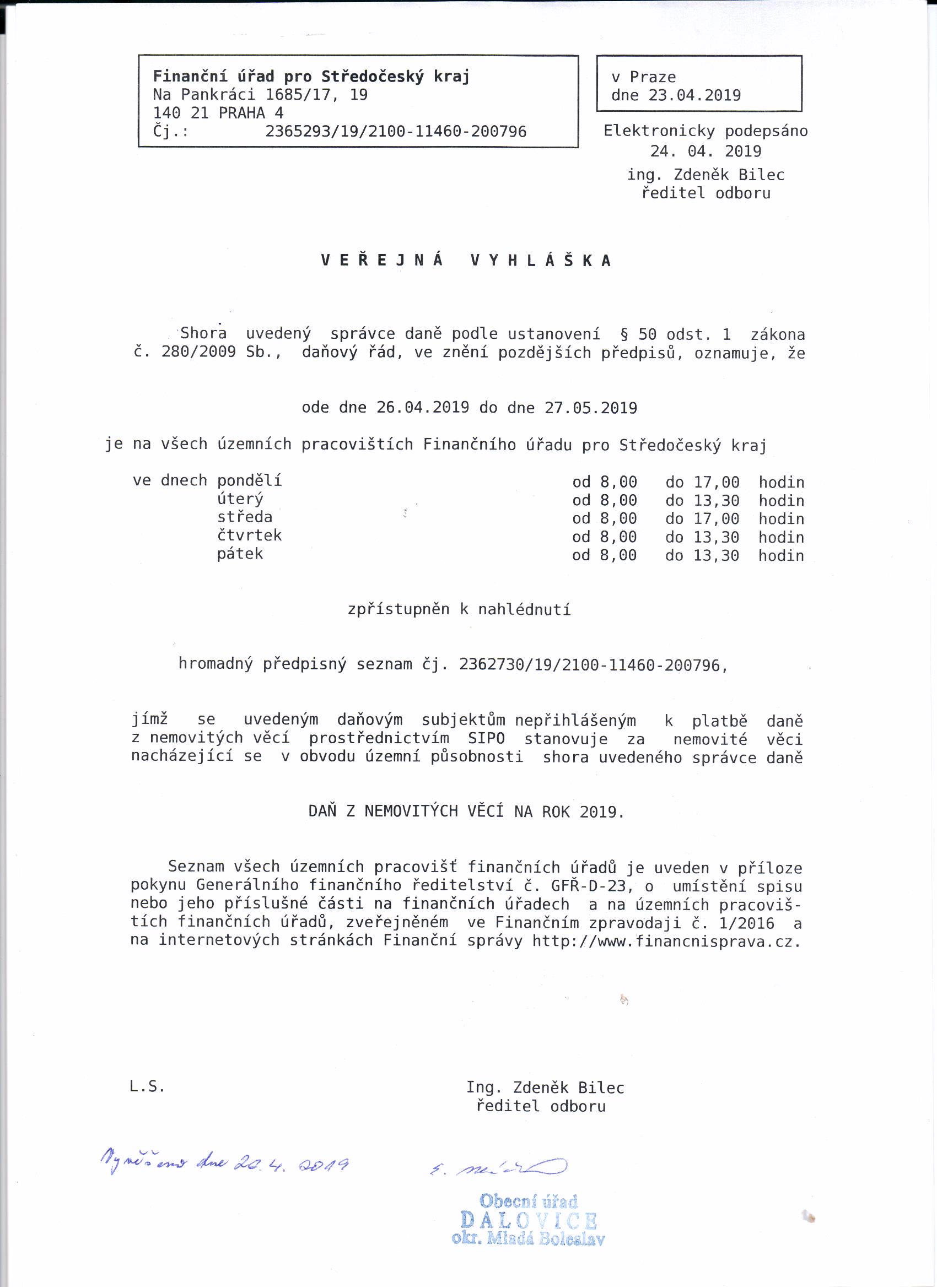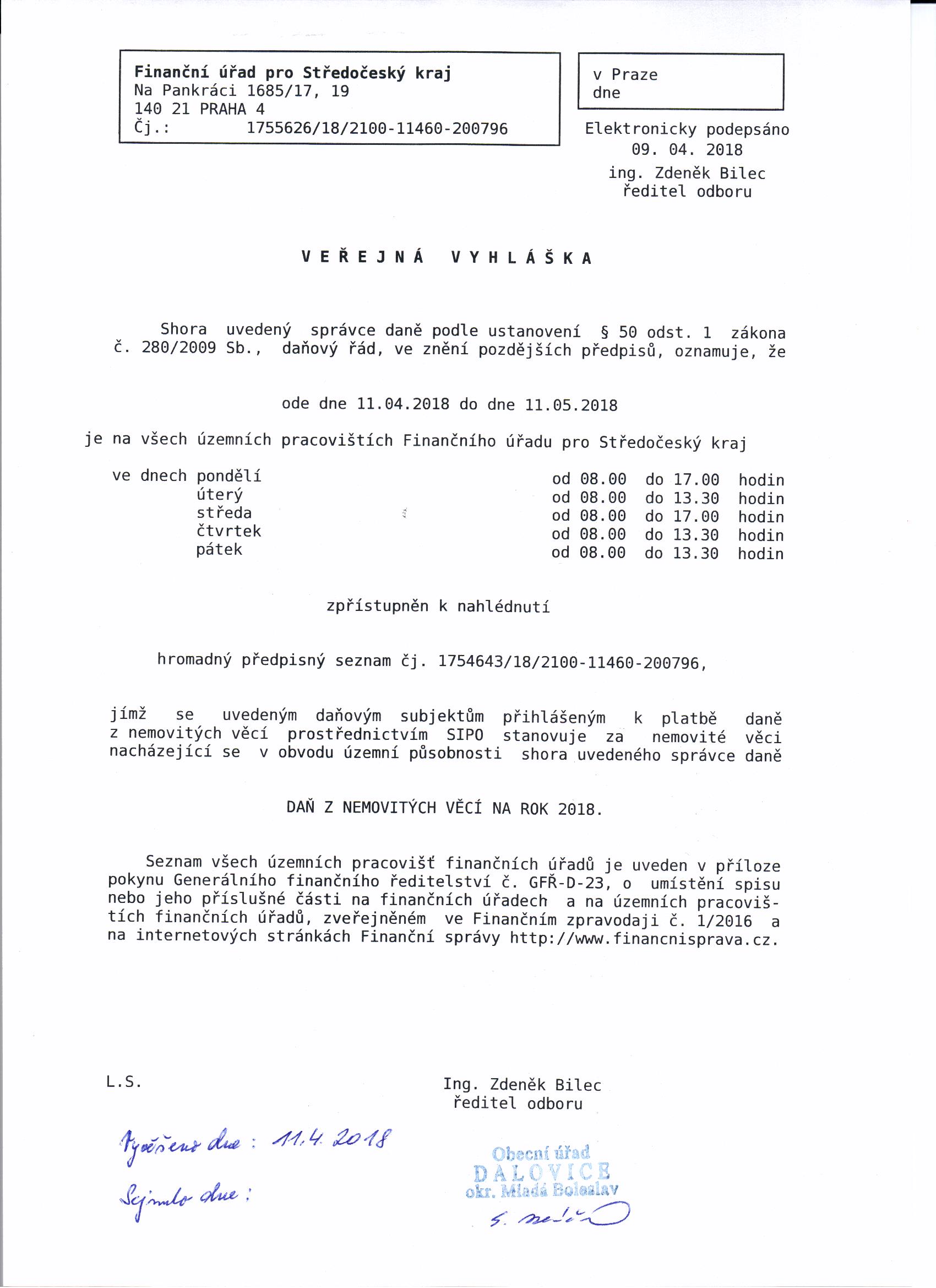 Vyhláška Finančního úřadu Mladá Boleslav vyhláška k dani z nemovitosti |