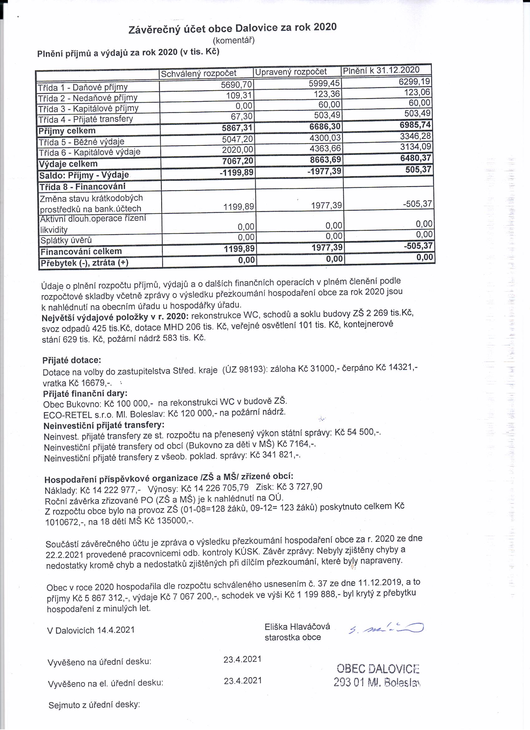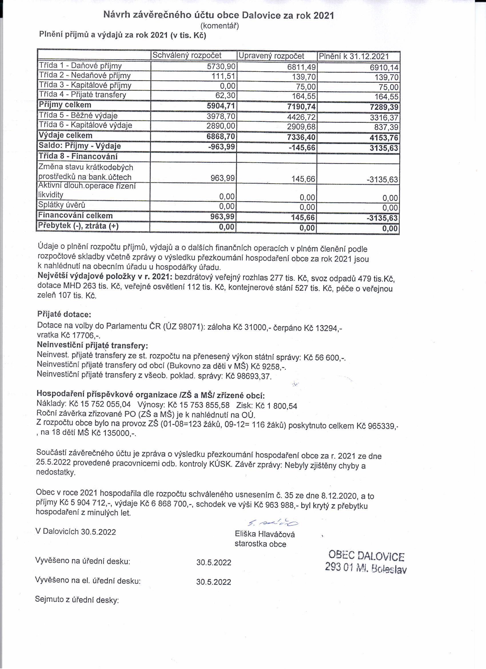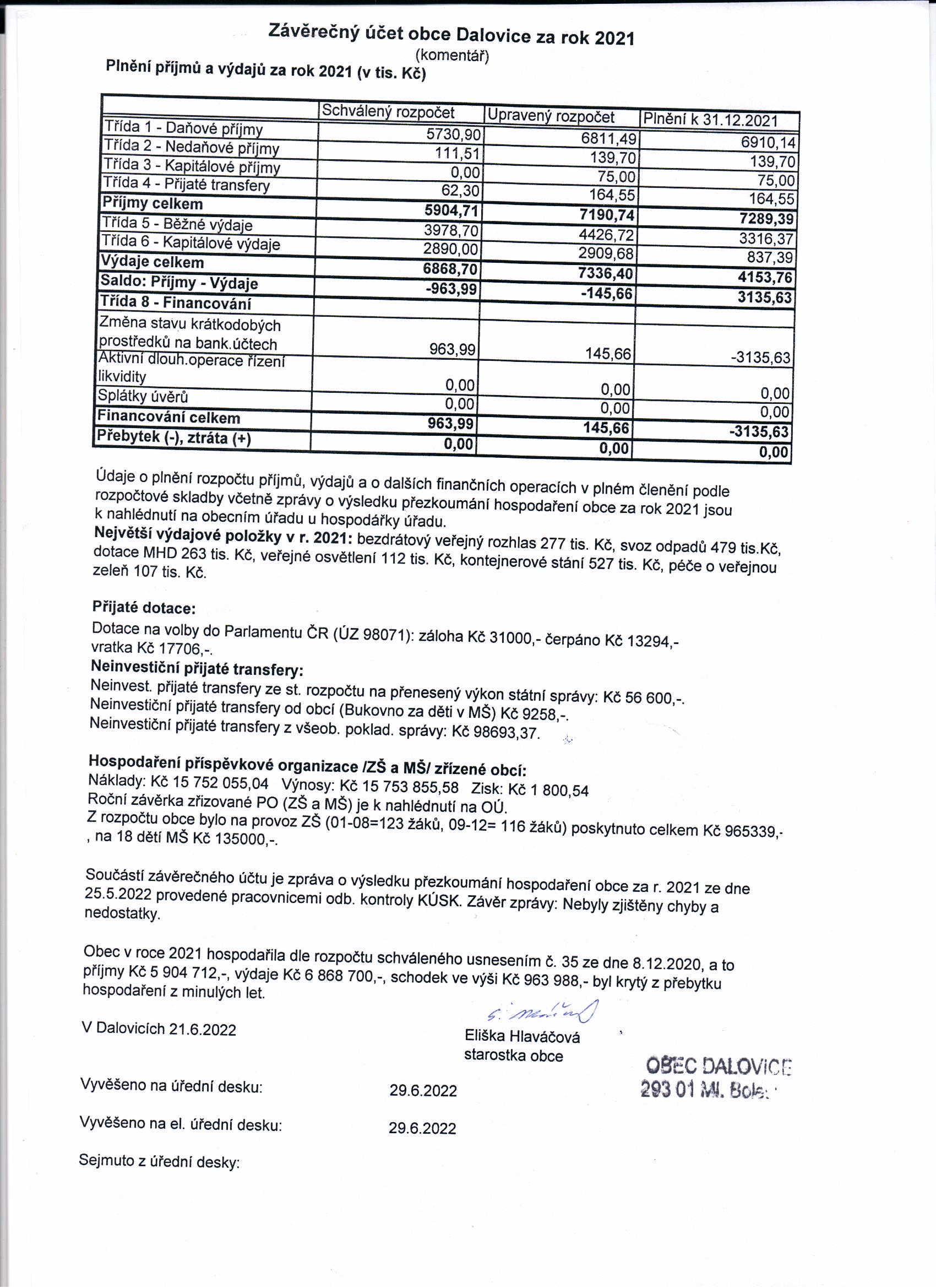 Závěrečný účet 2021 schválený - komentář Zaverecny ucet 2021 |
