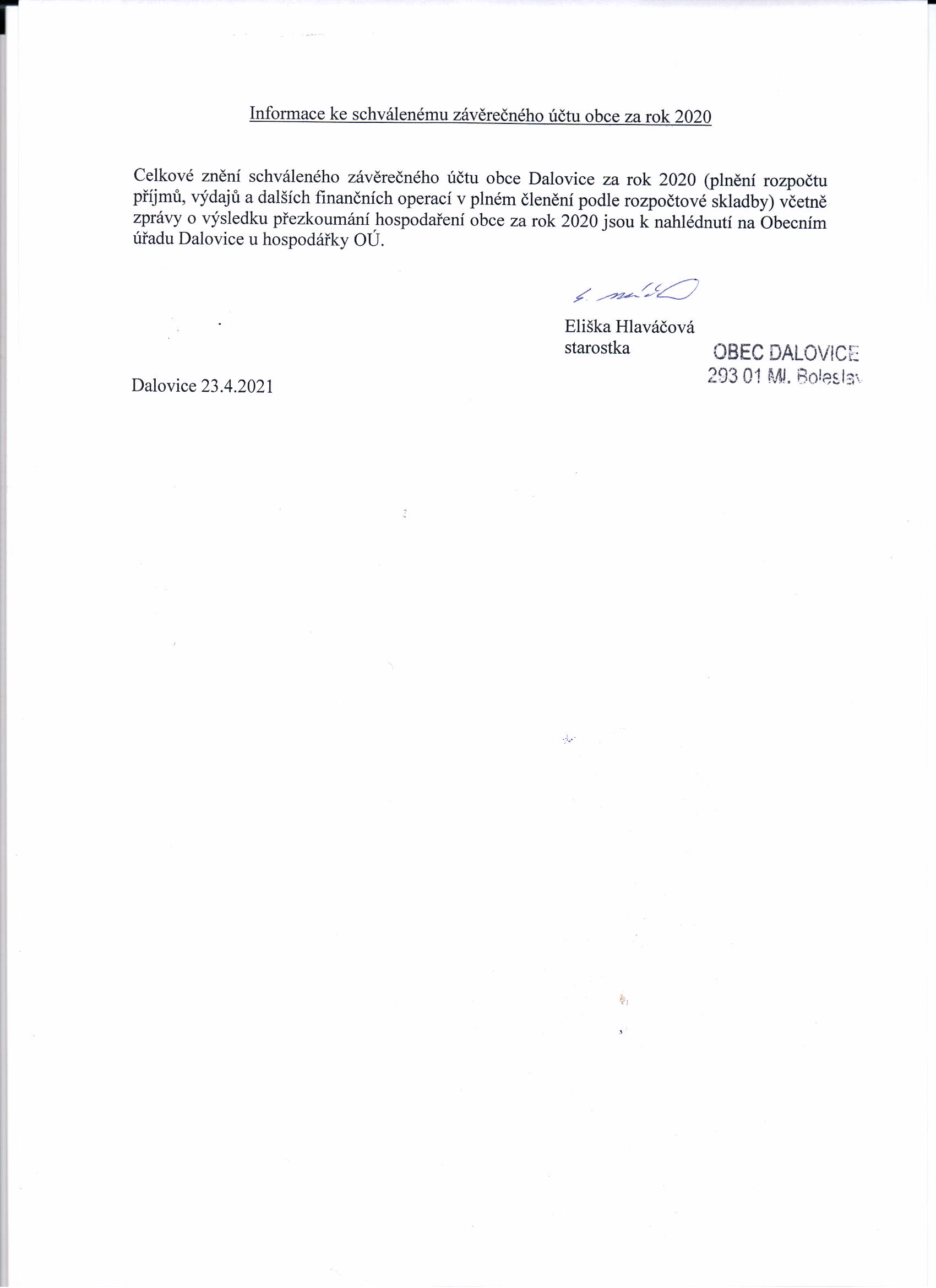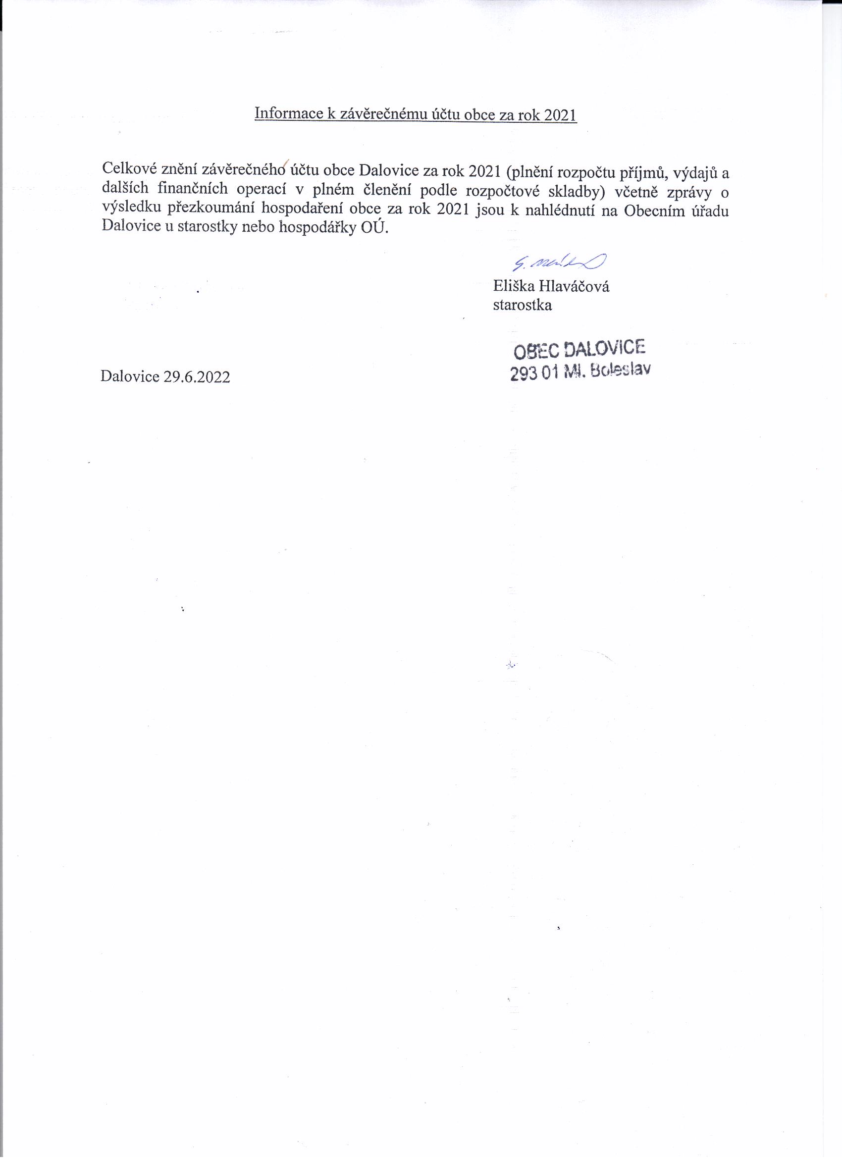 Informace k závěrečnému účtu obce za r. 2021 Info k ZU 2021 |