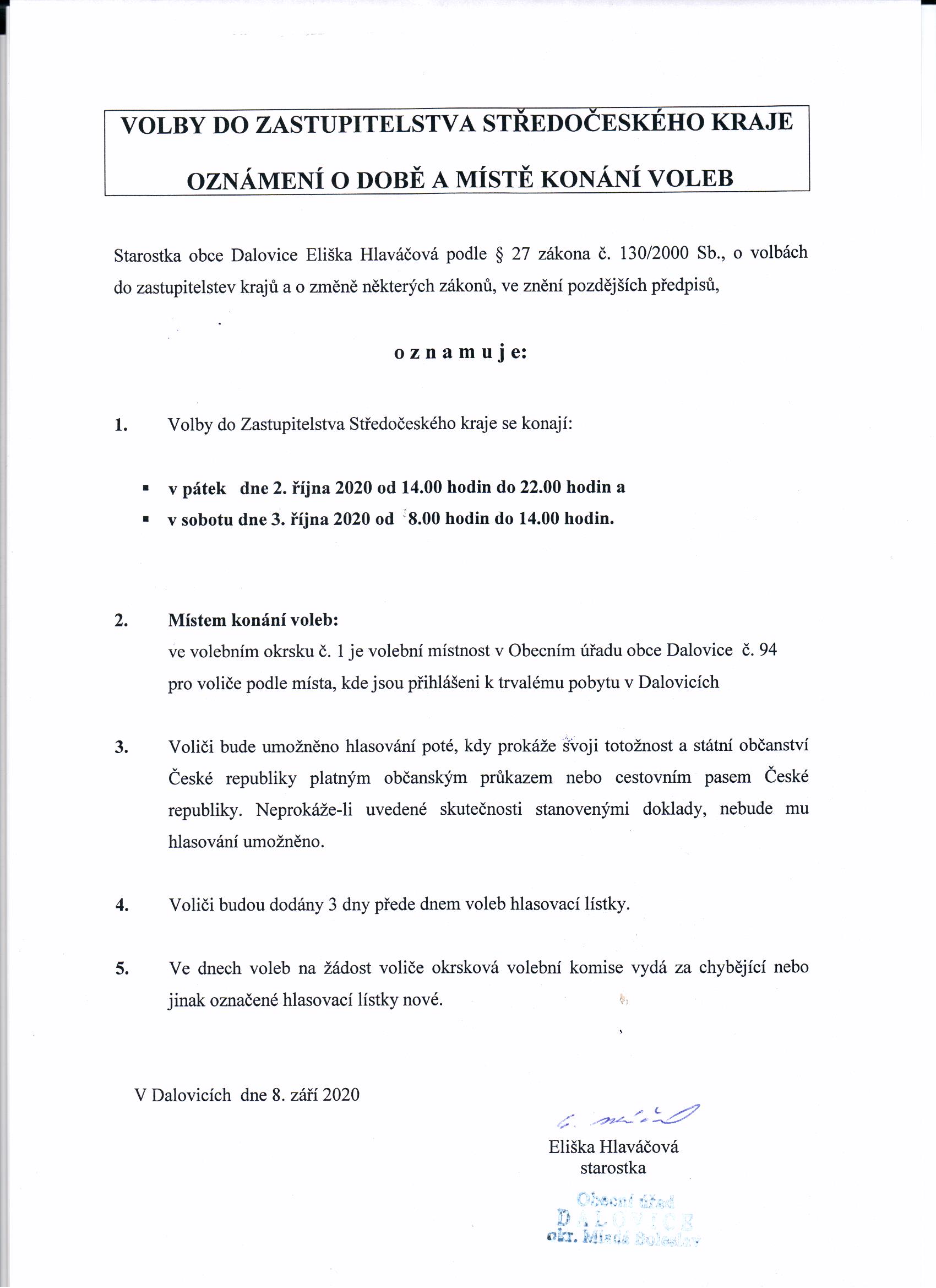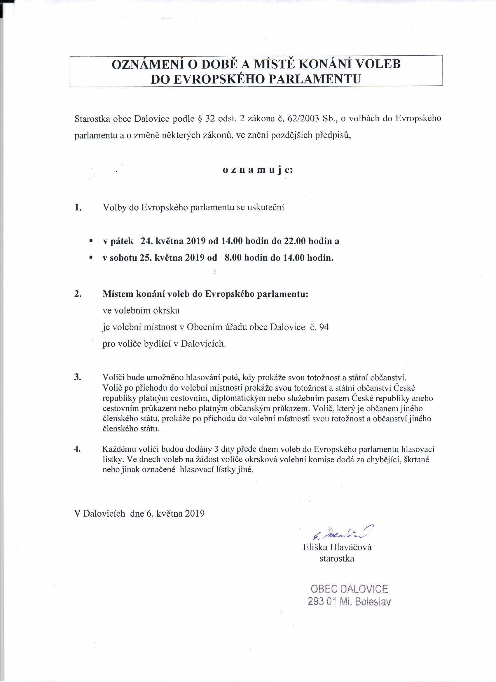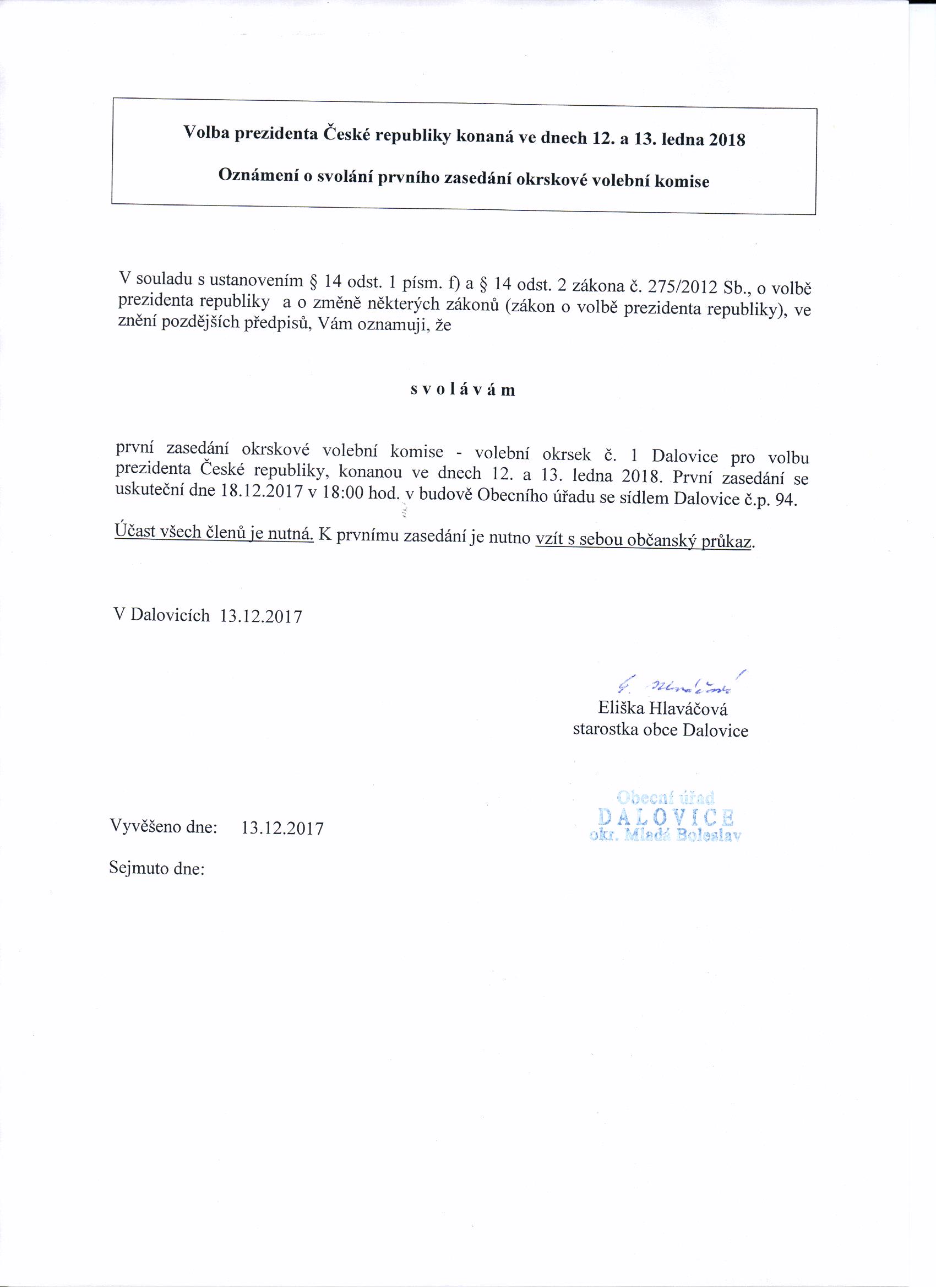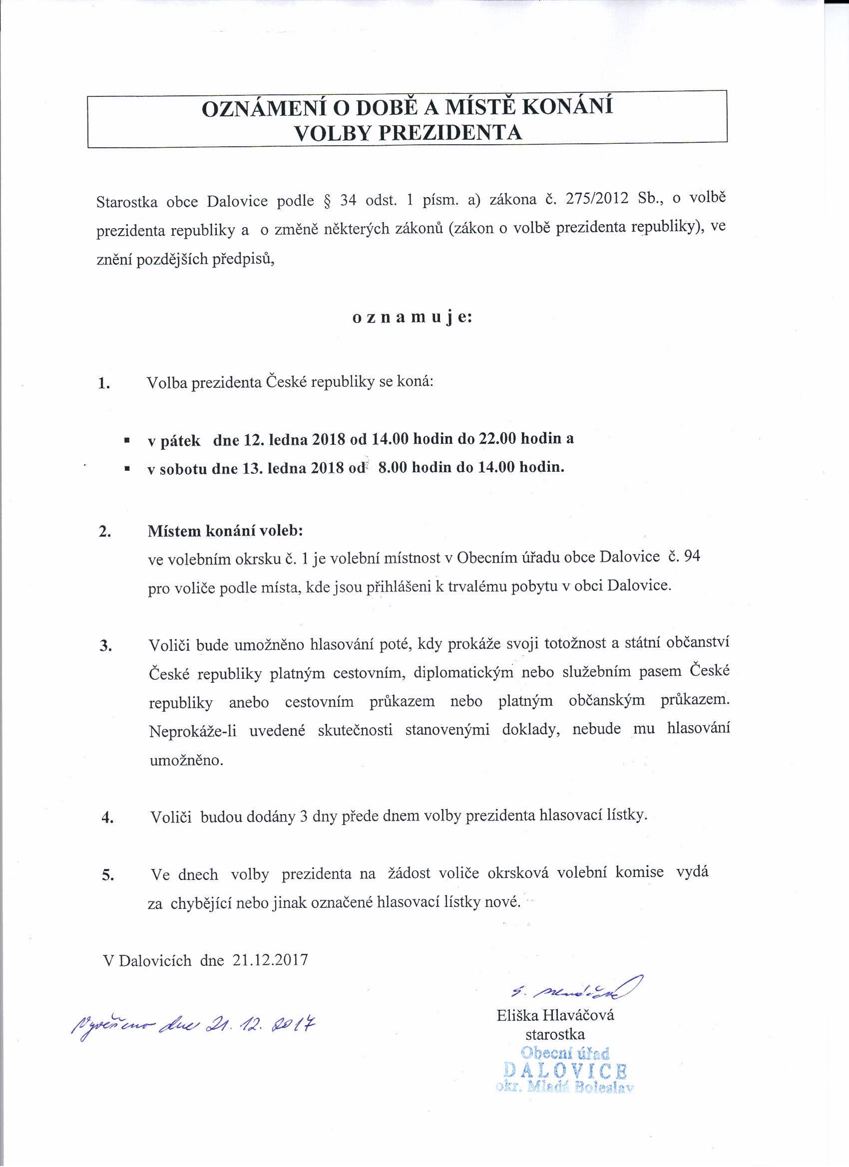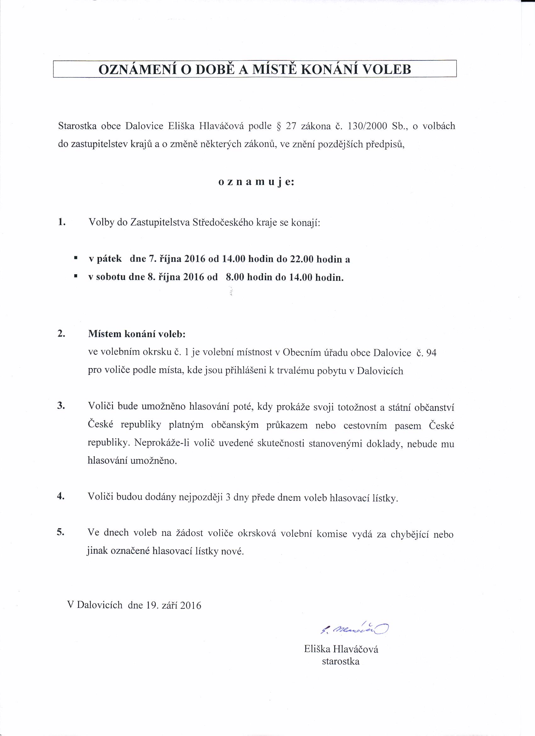 Oznámení o době a místě konání voleb Oznameni o dobe a miste konani voleb |