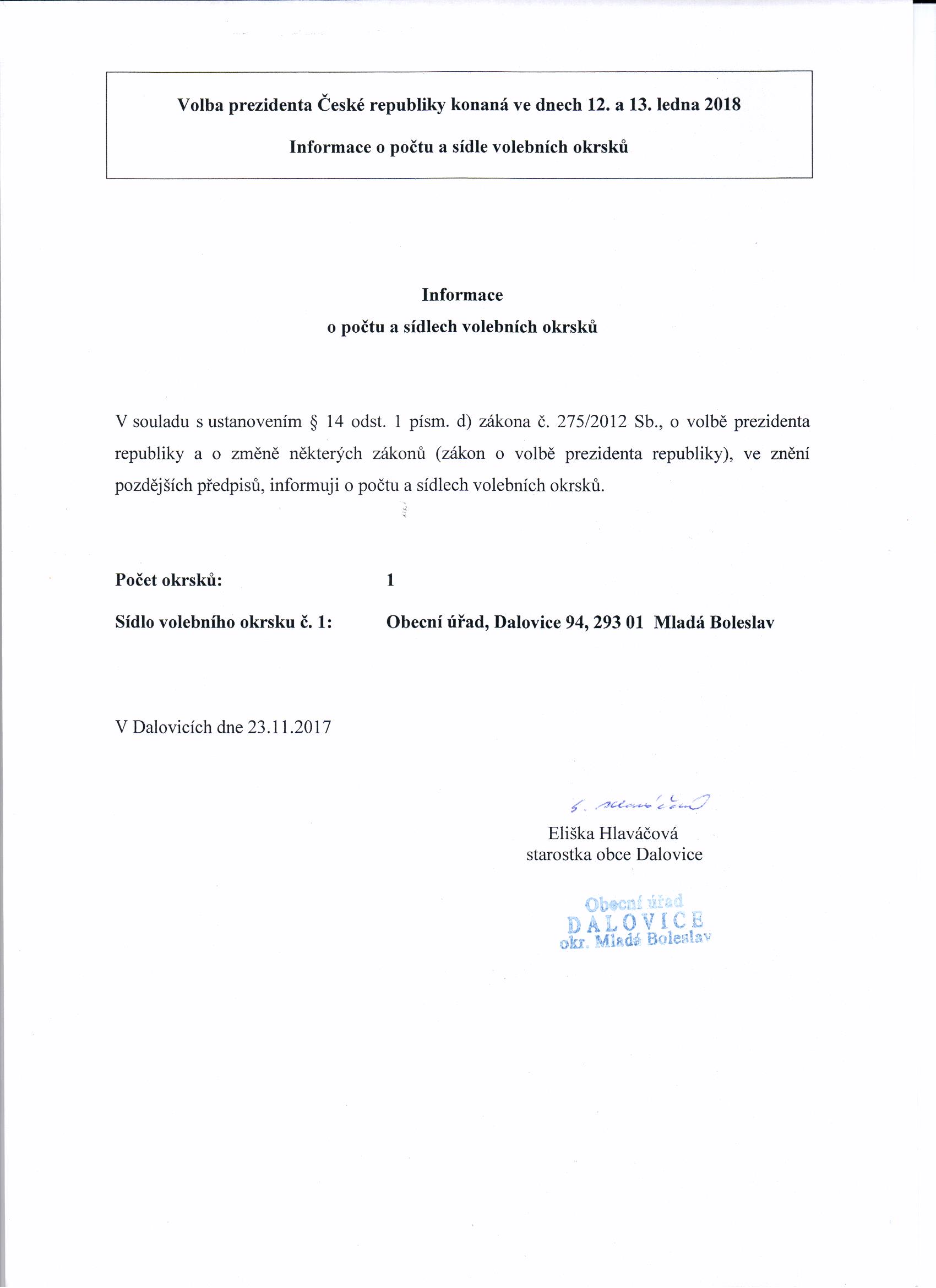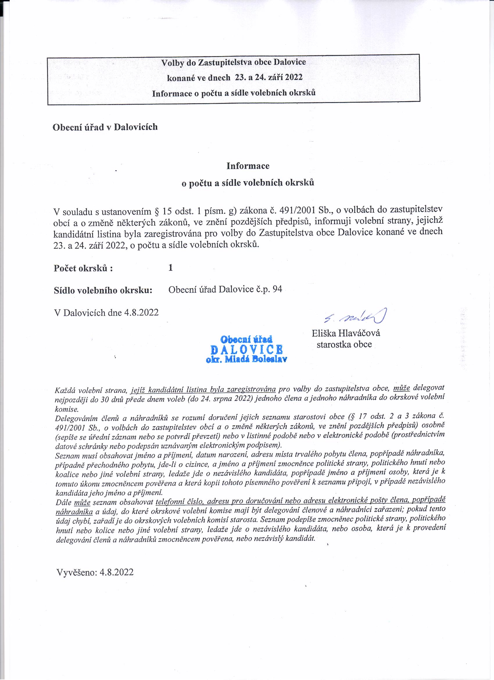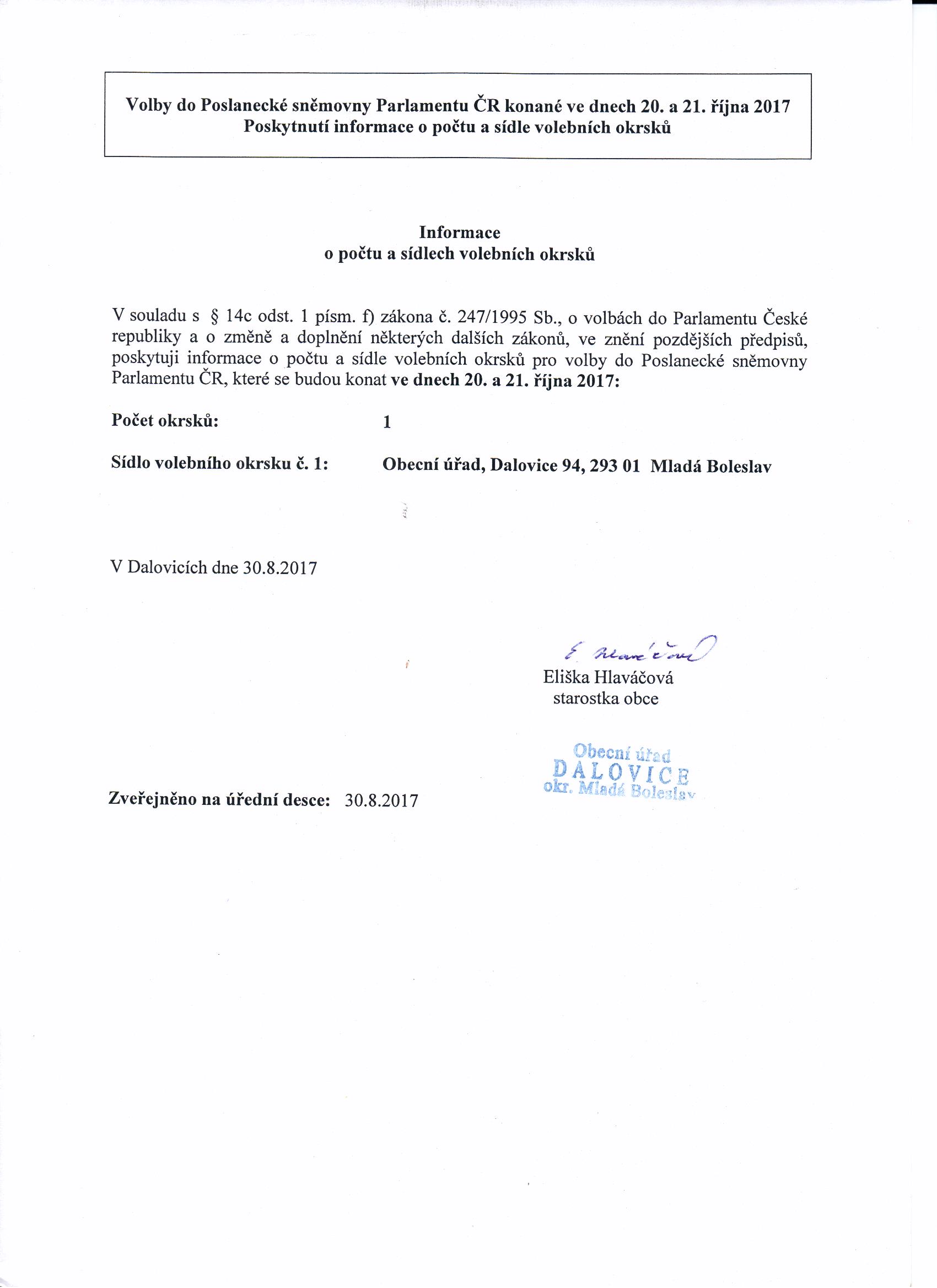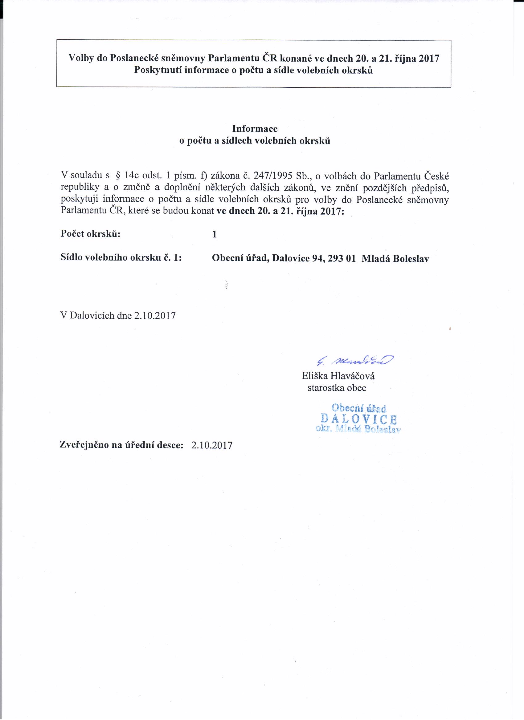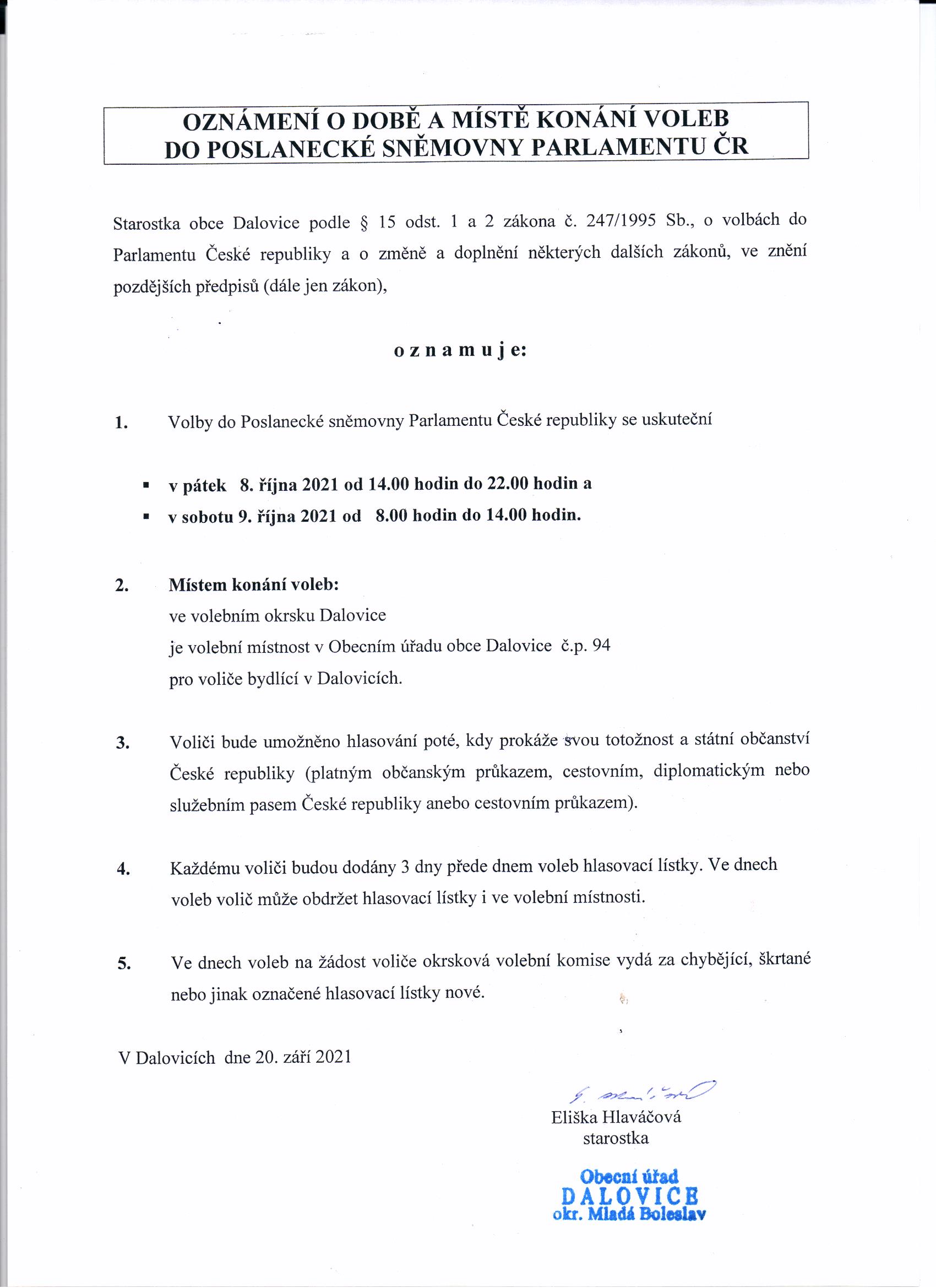 Oznámení o době a místě konání voleb Oznameni o dobe a miste konani voleb |