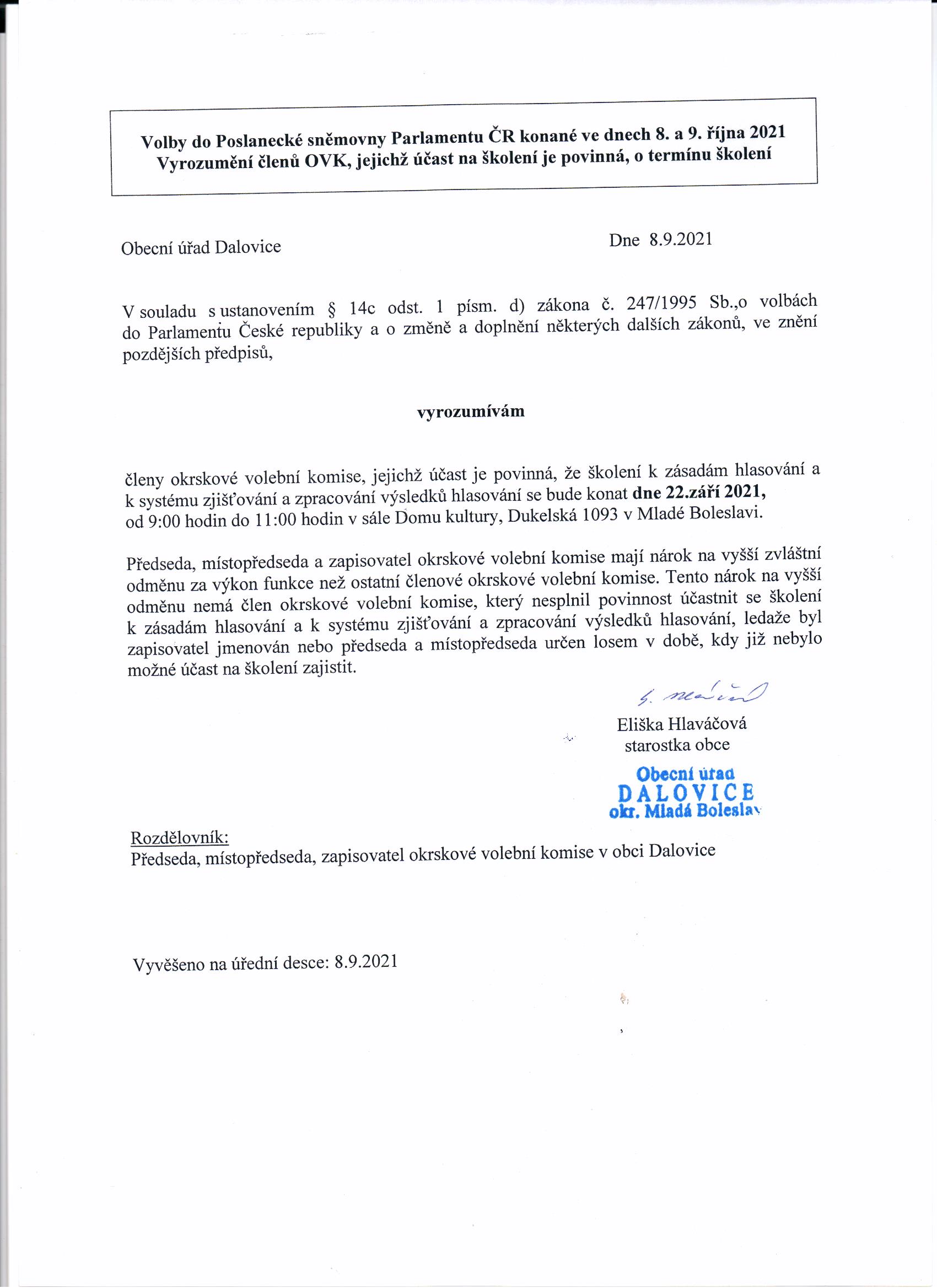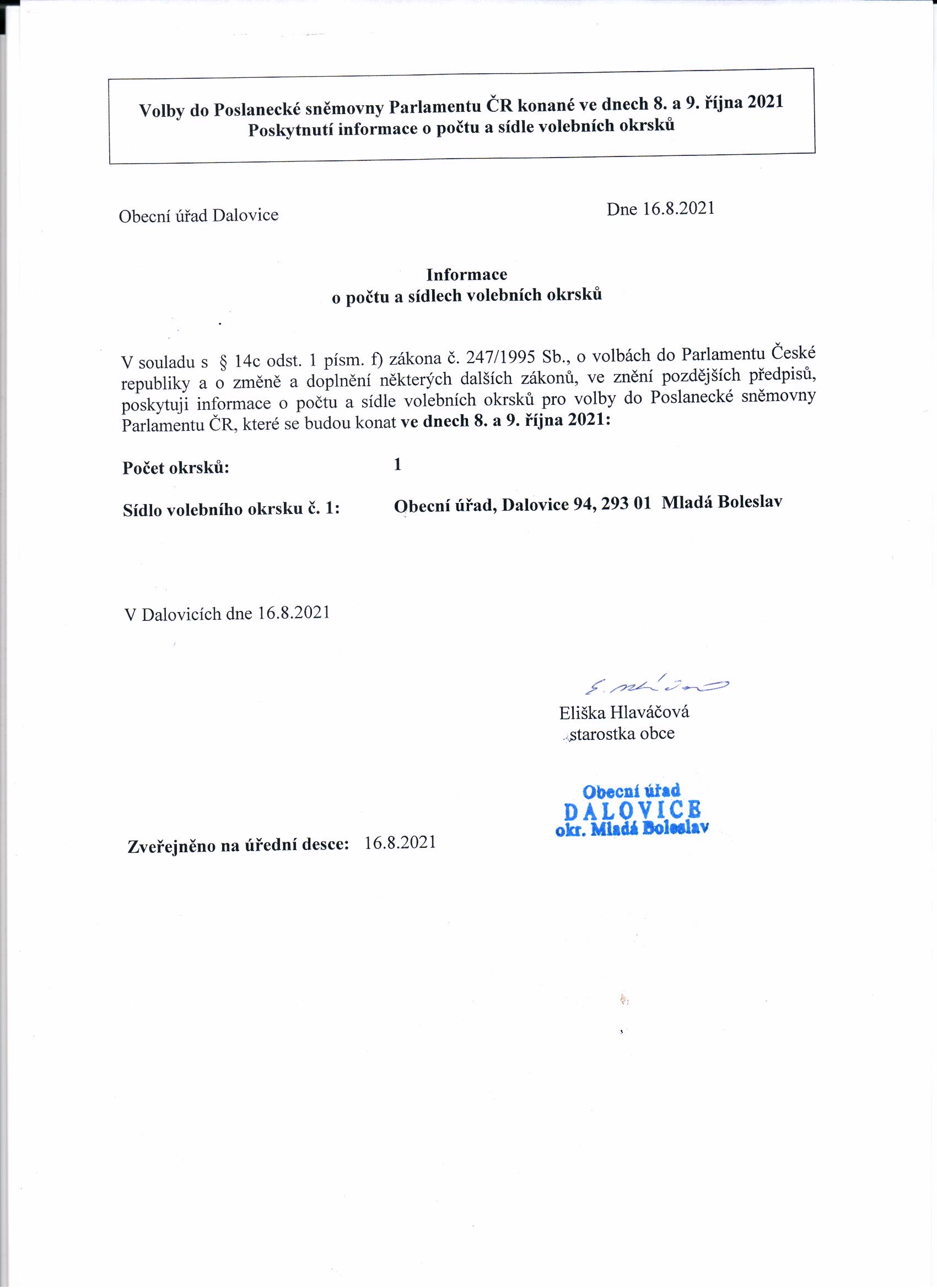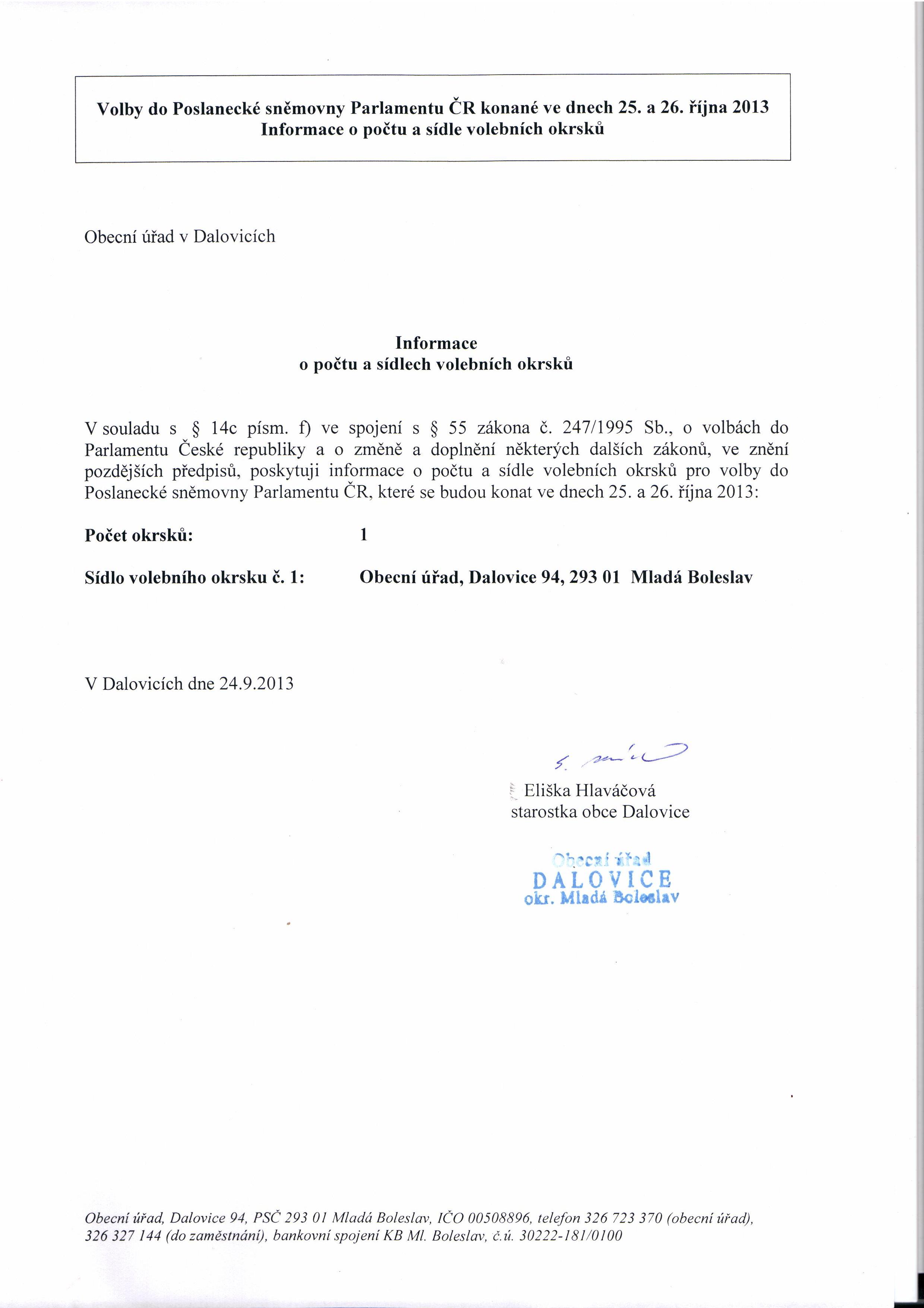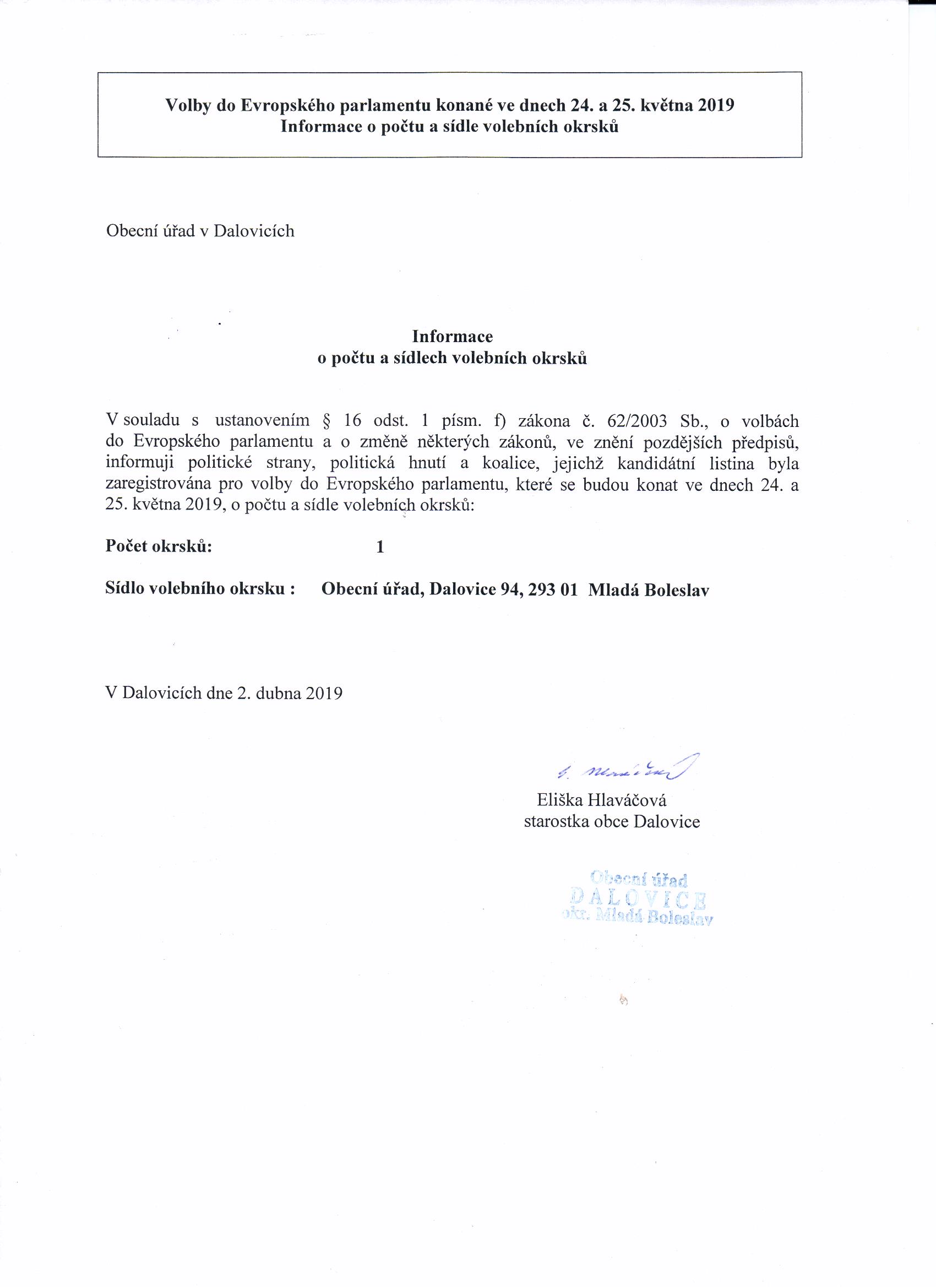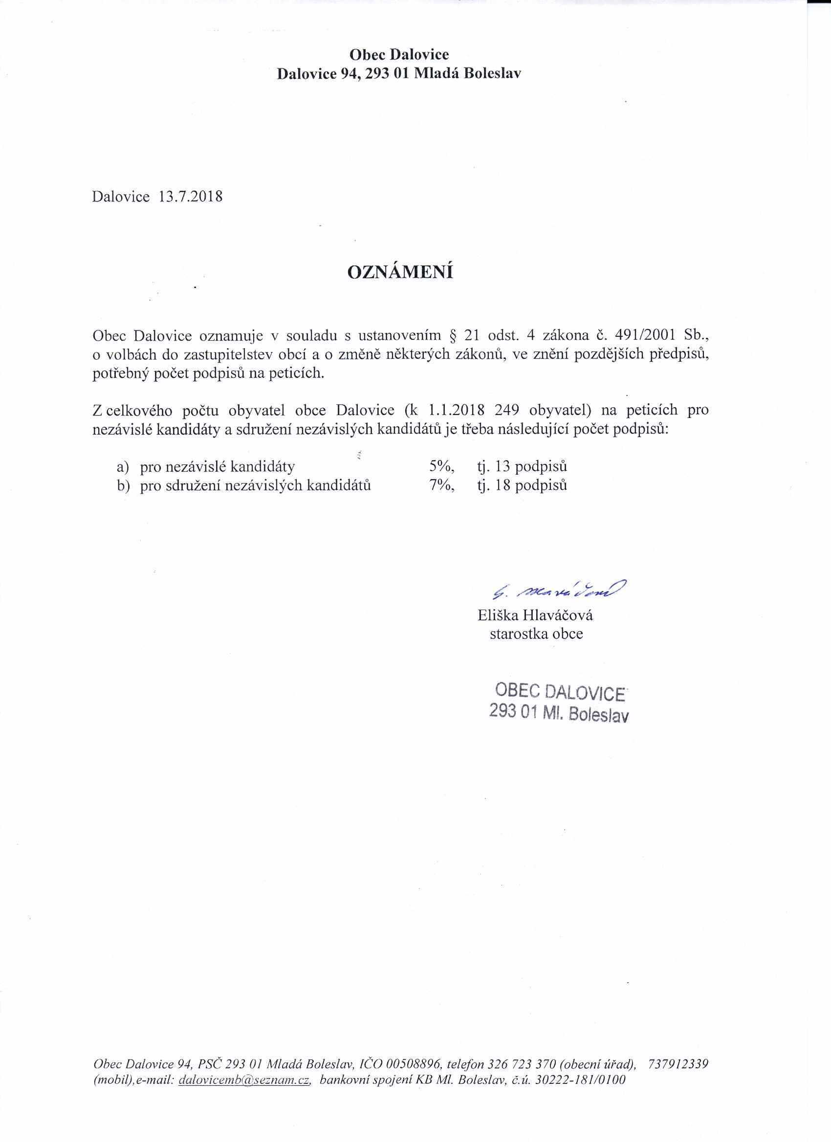 Oznámení o době a místě konání voleb Oznameni o dobe a miste konani voleb |
