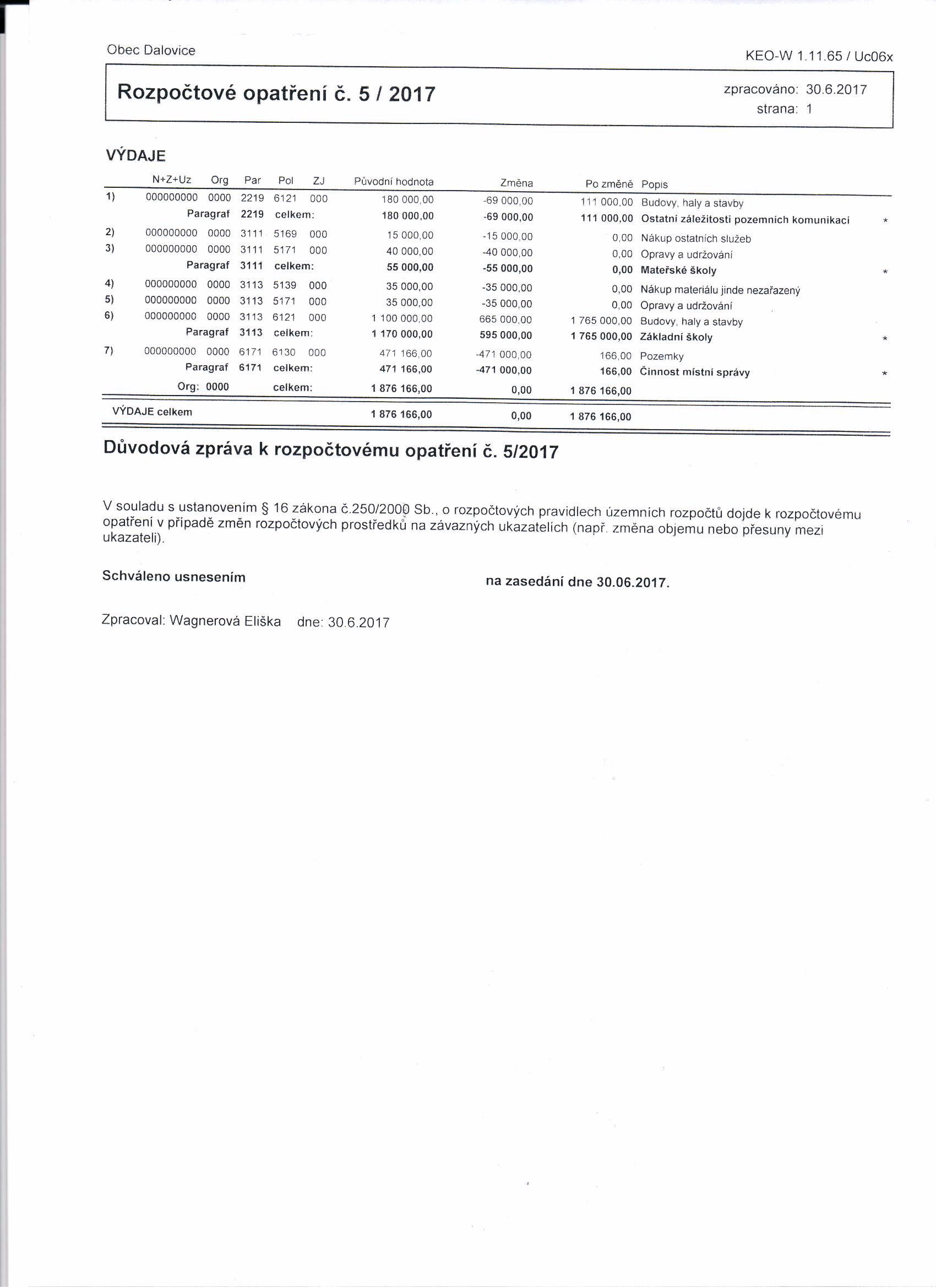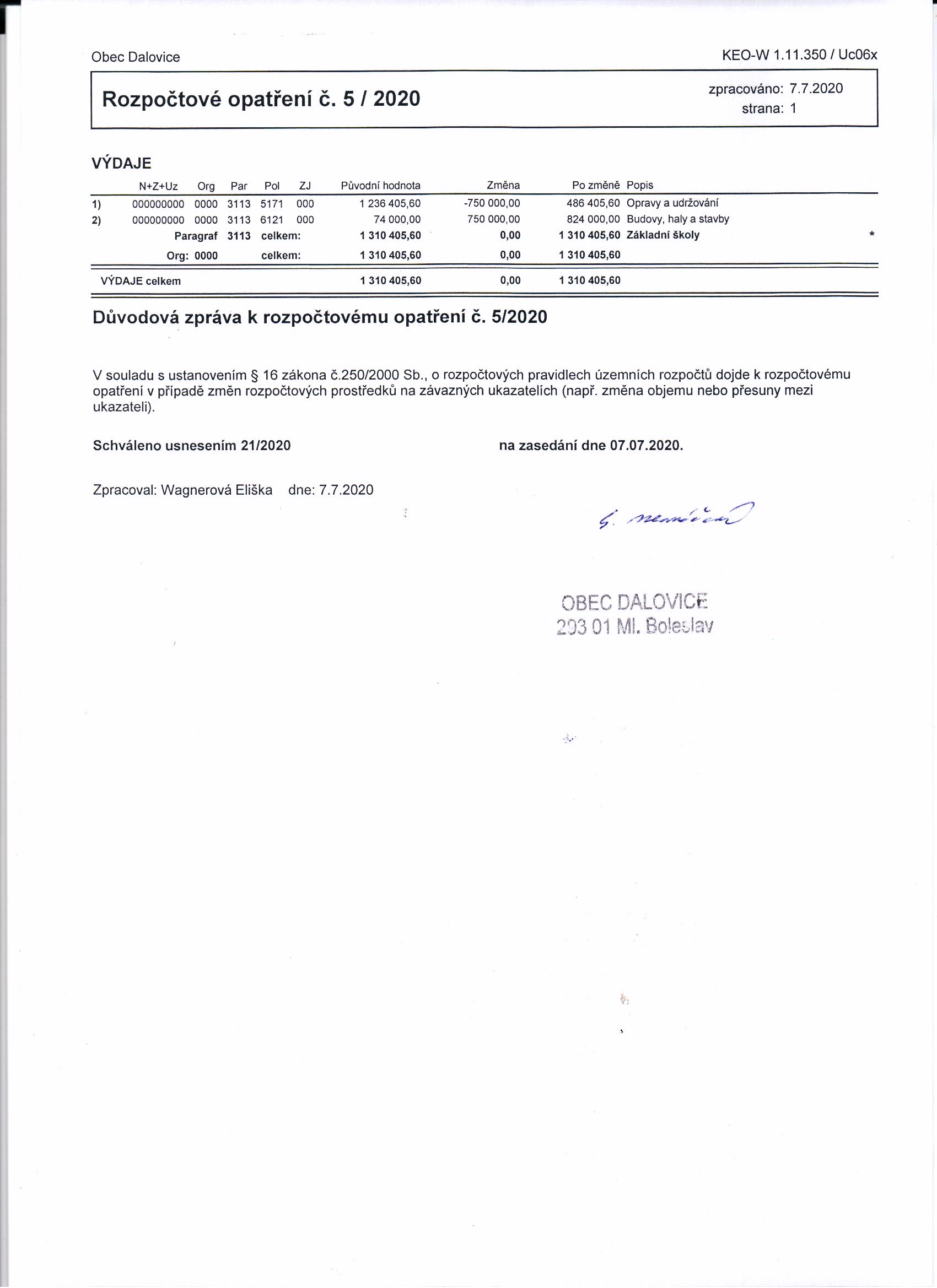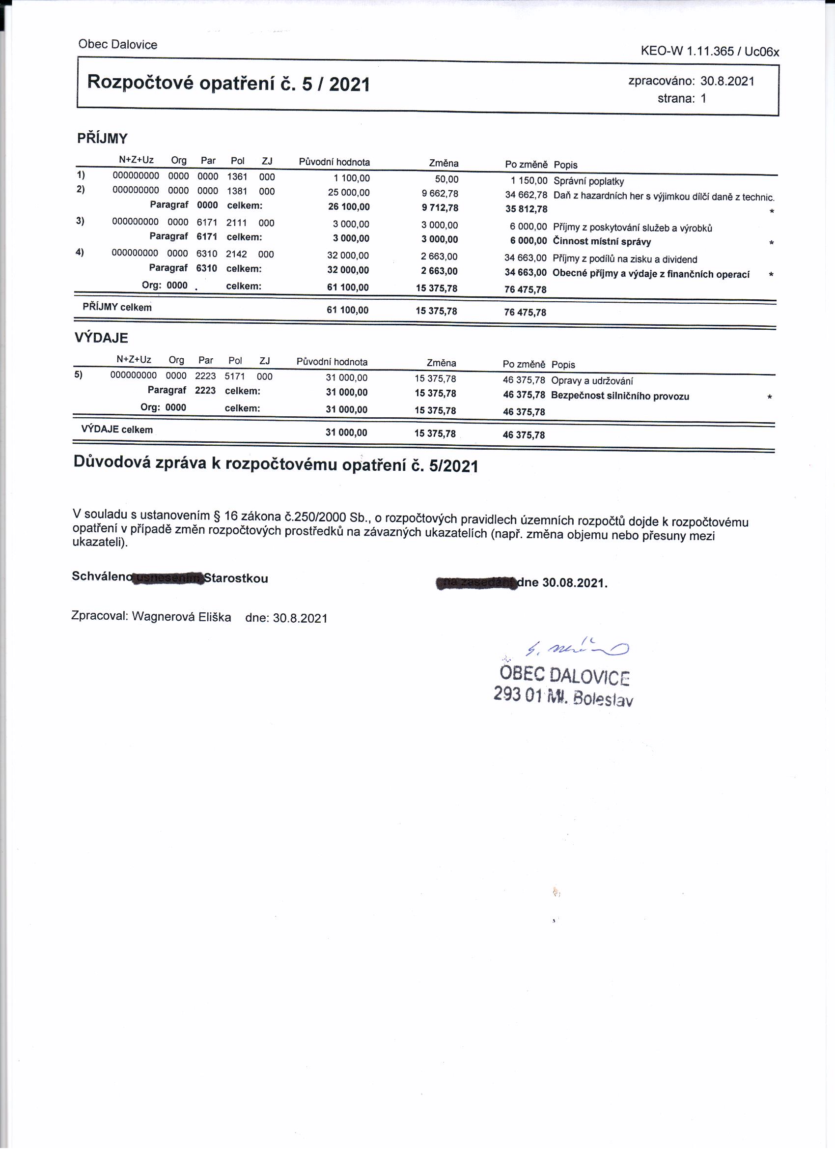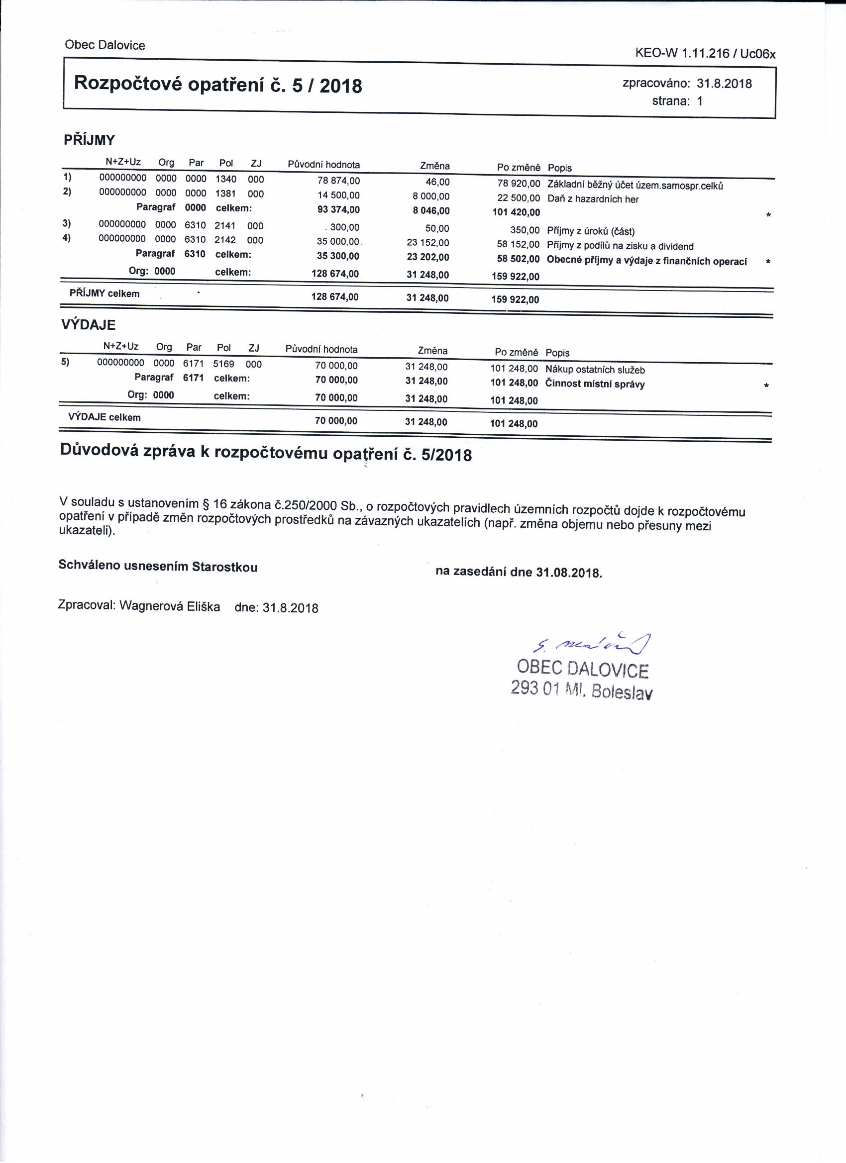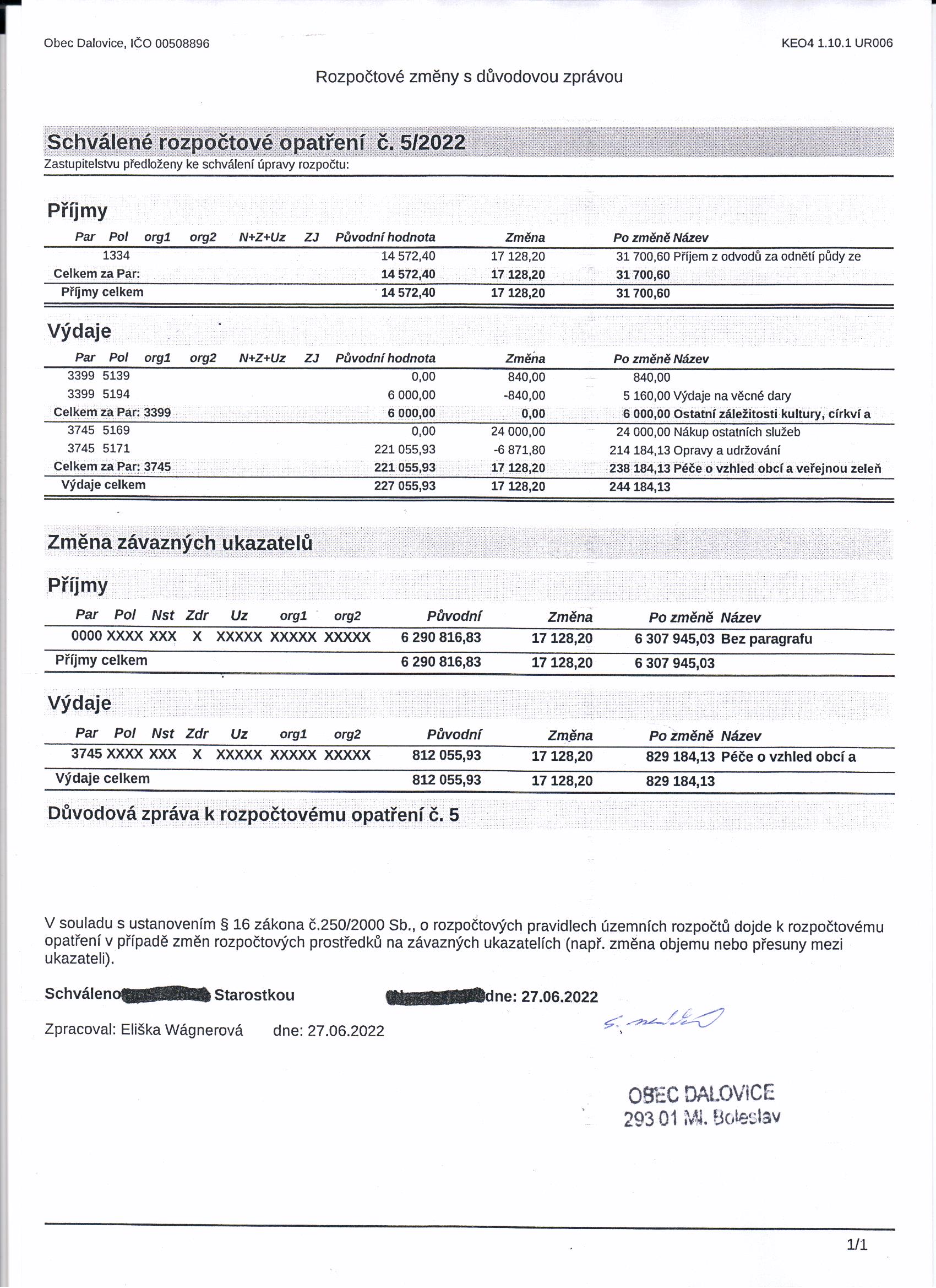 Rozpočtové opatření č. 5/2022 RO 5-2022 |