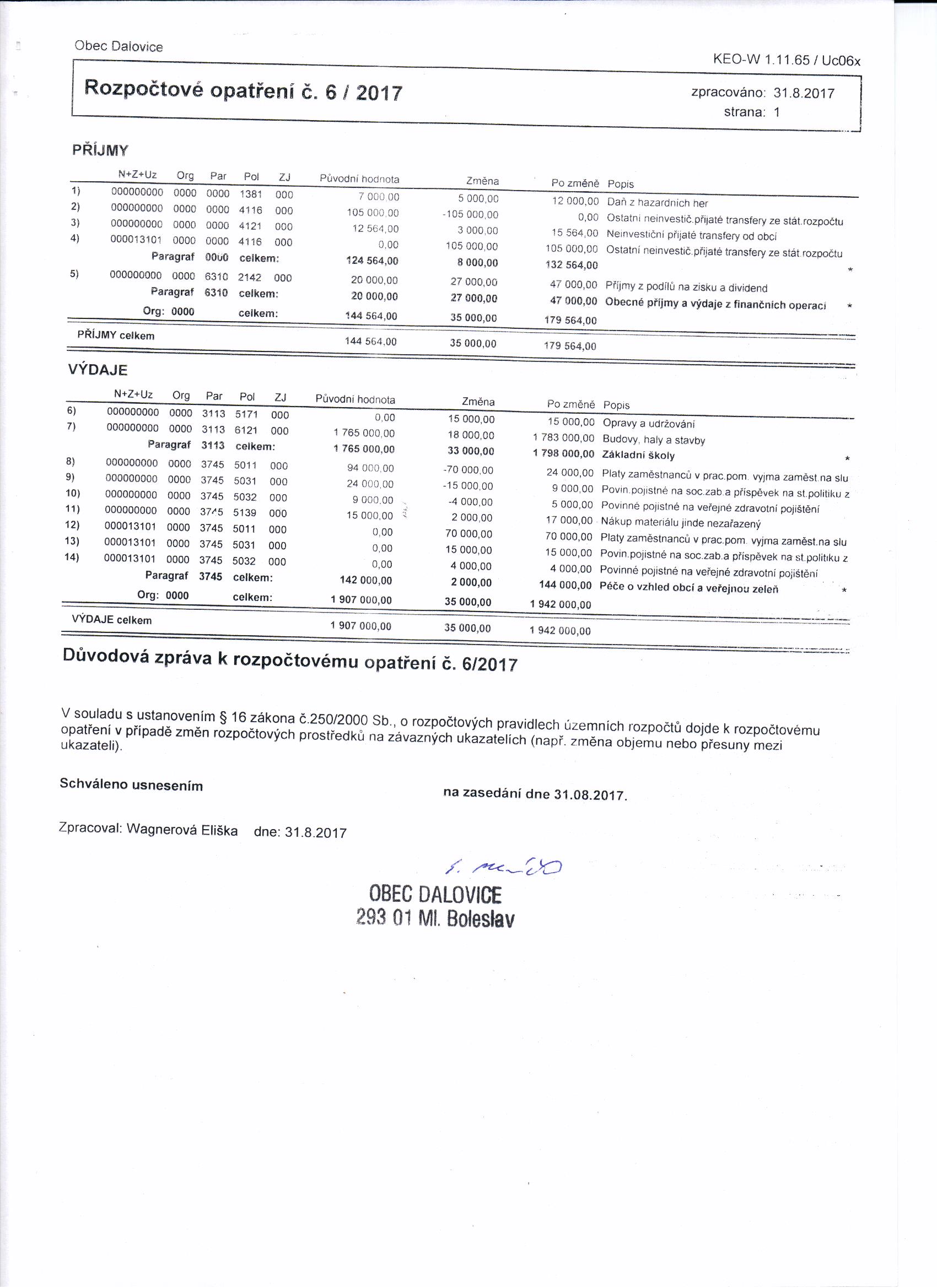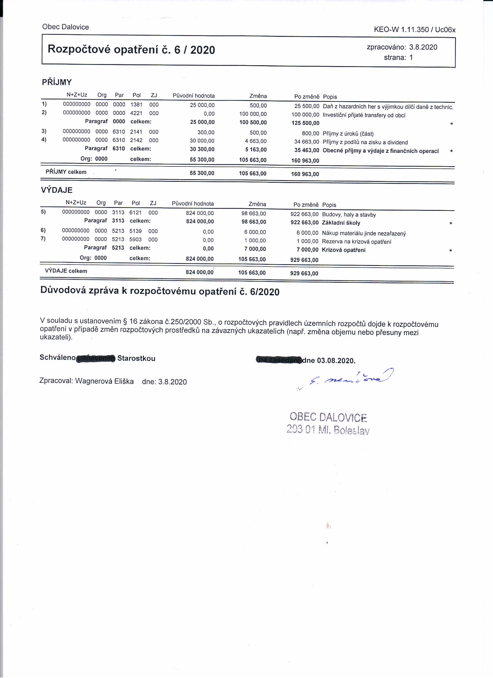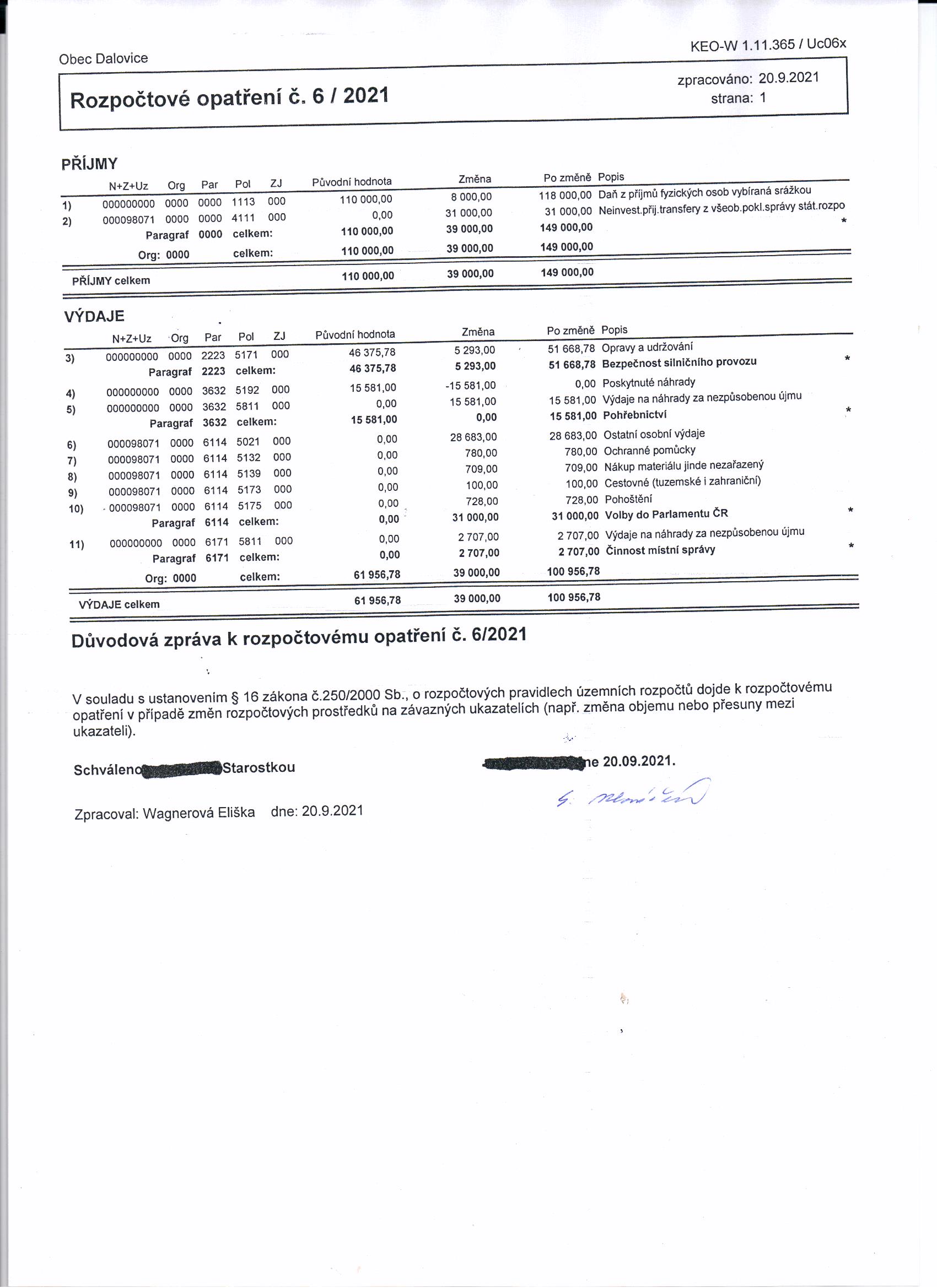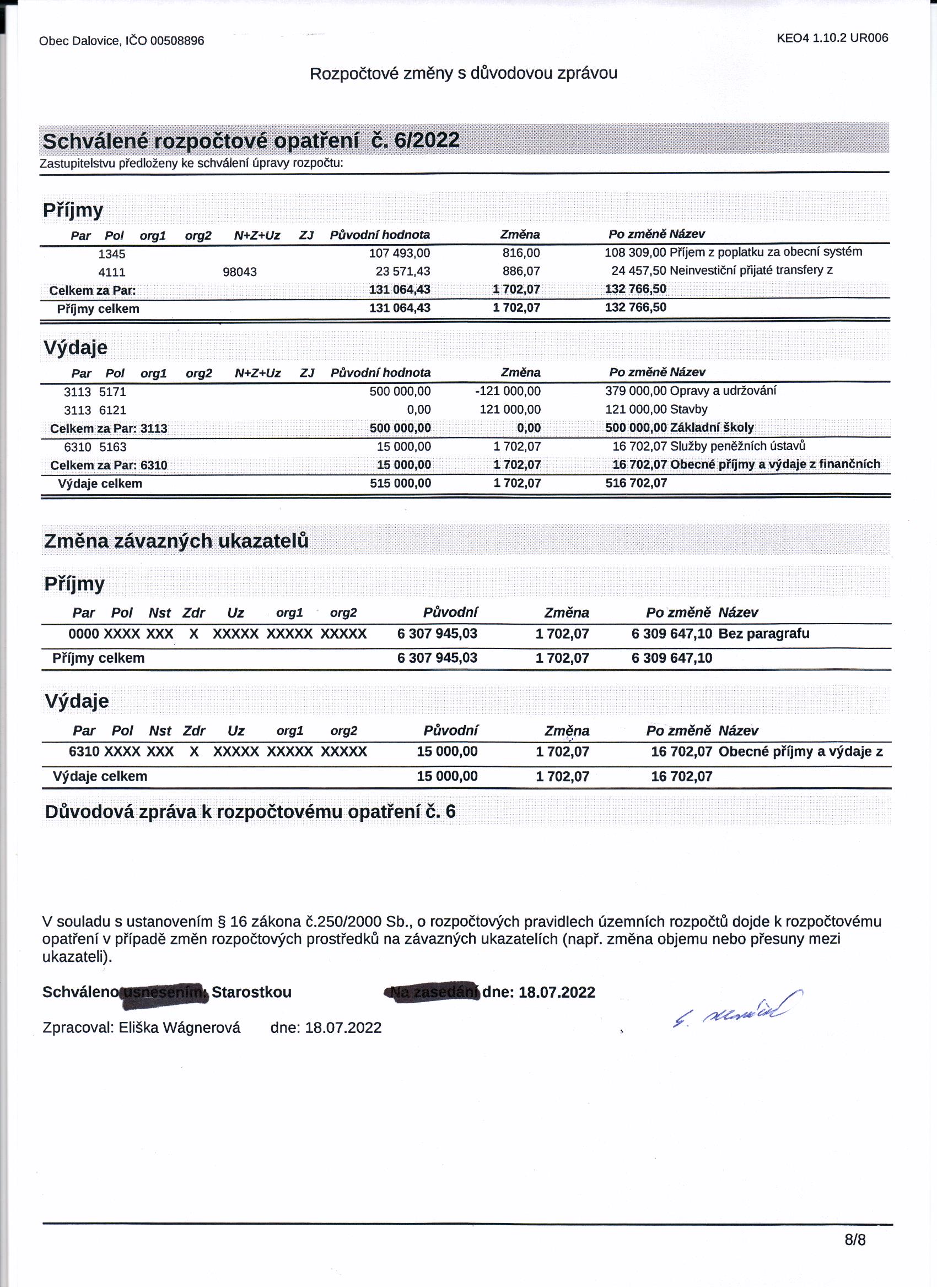 Rozpočtové opatření č. 6-2022 RO 6-22 |