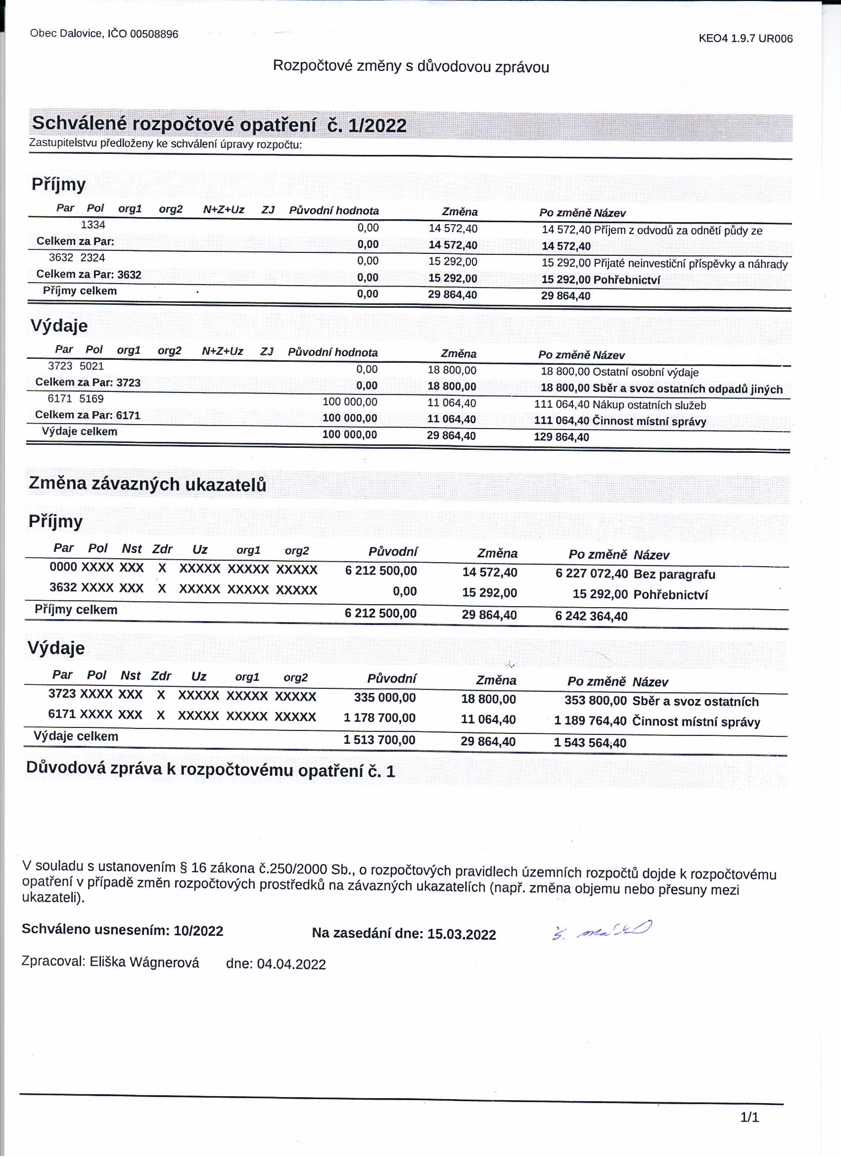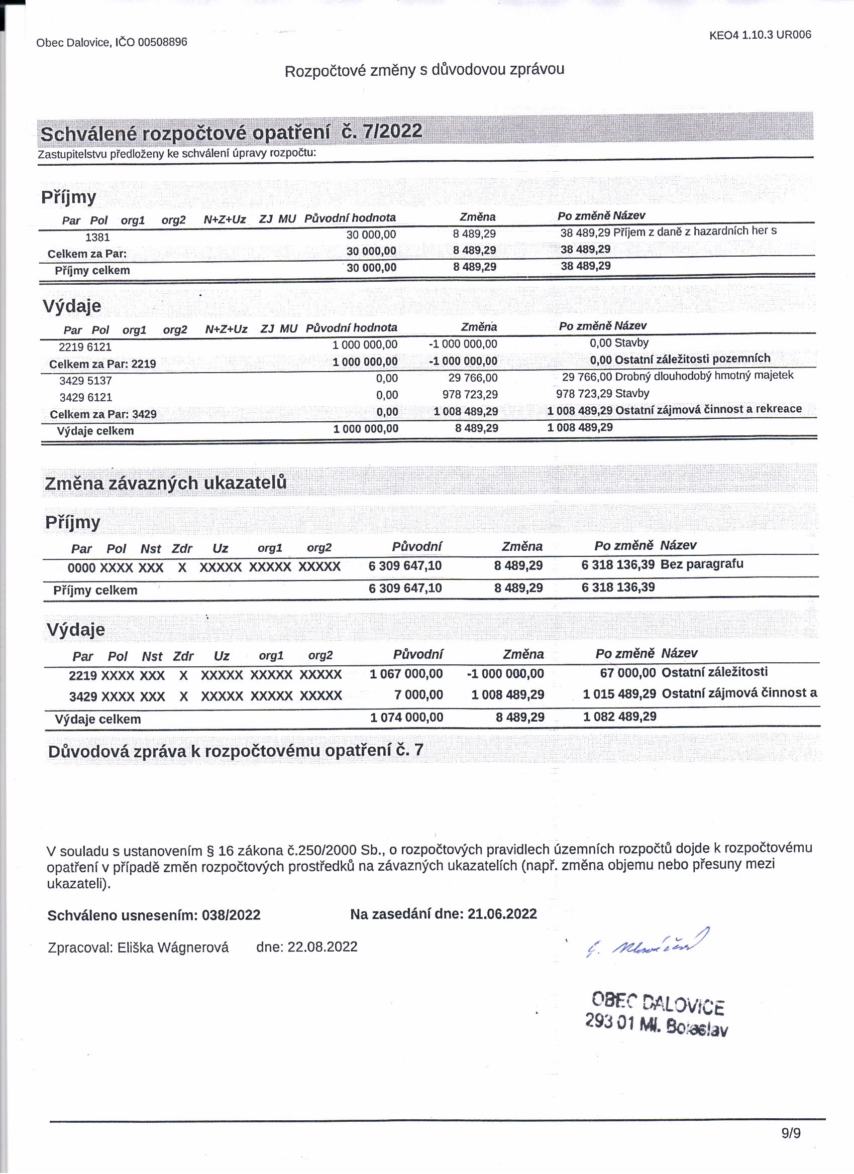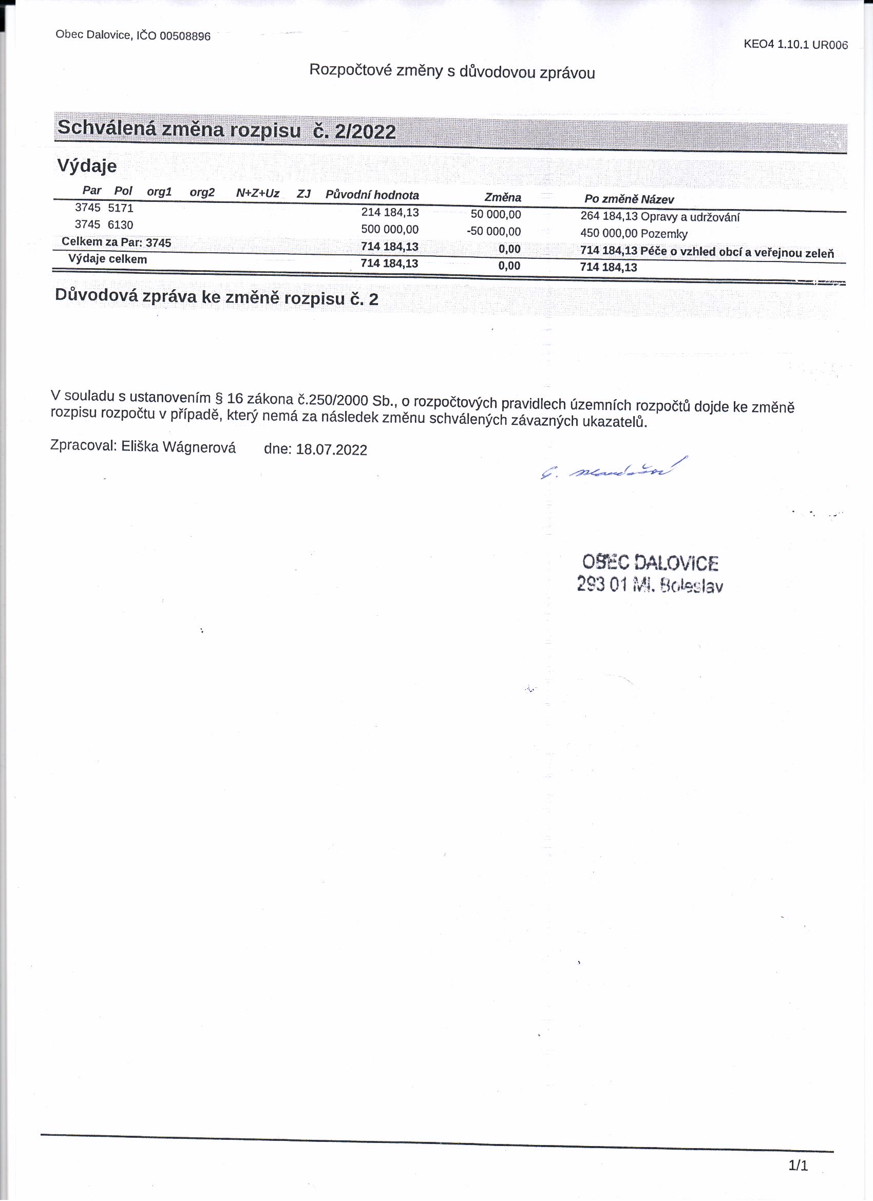 Rozpočtové opatření č. 7/2022 RO 7-2022 |