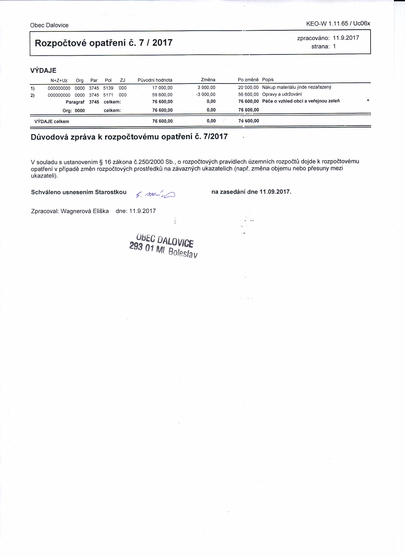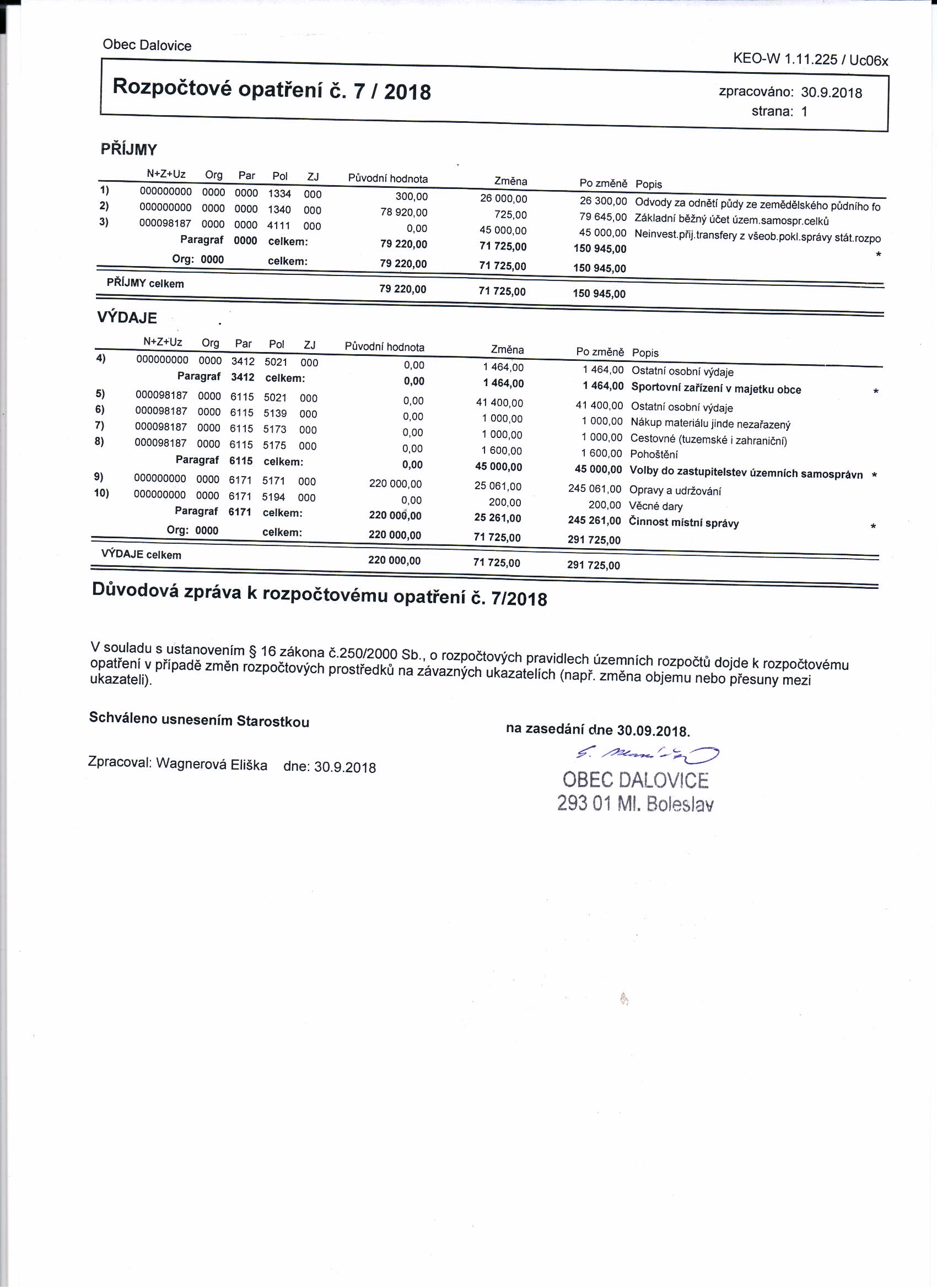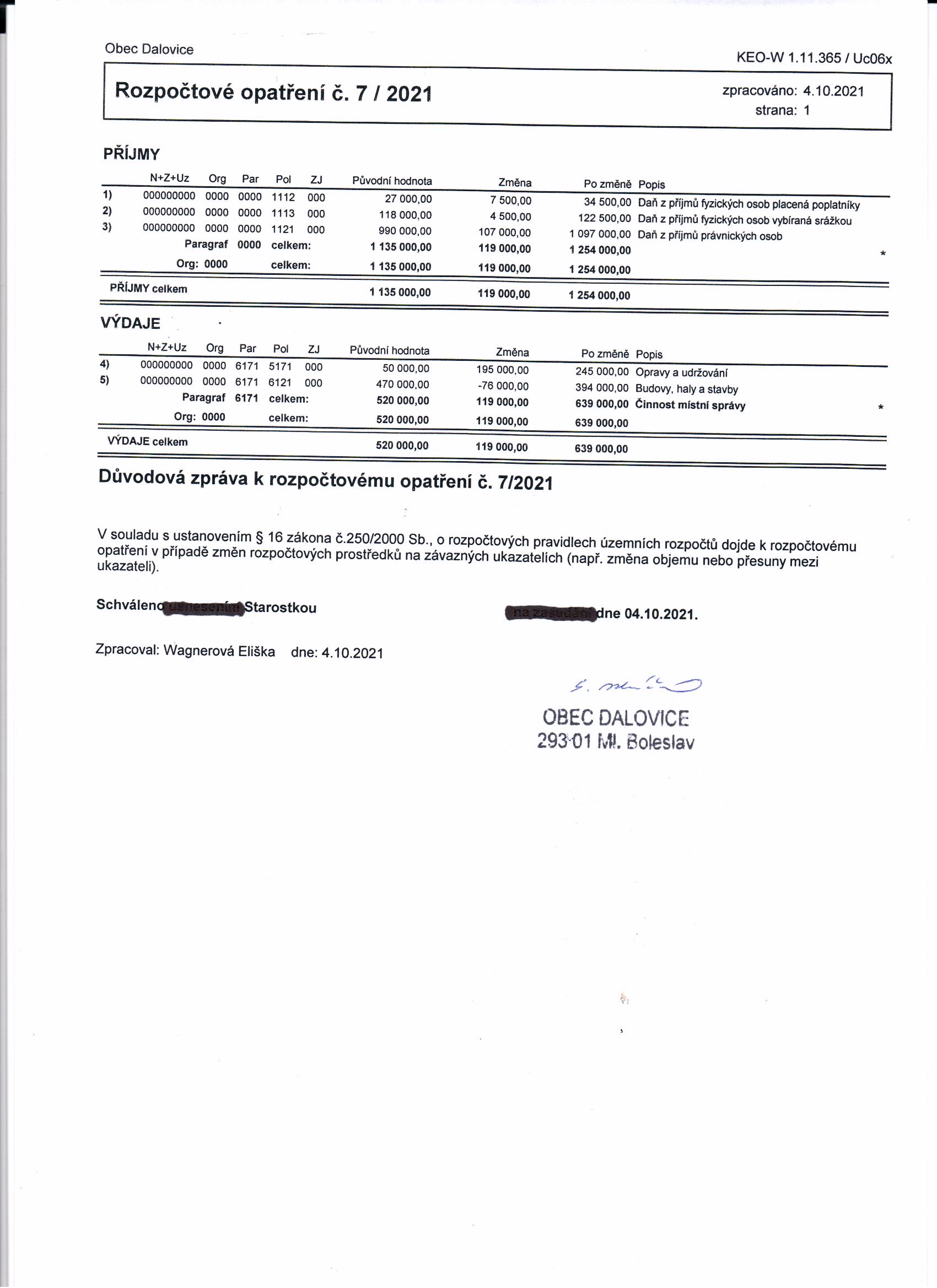 Rozpočtové opatření č. 7/2022 RO 7-2022 |