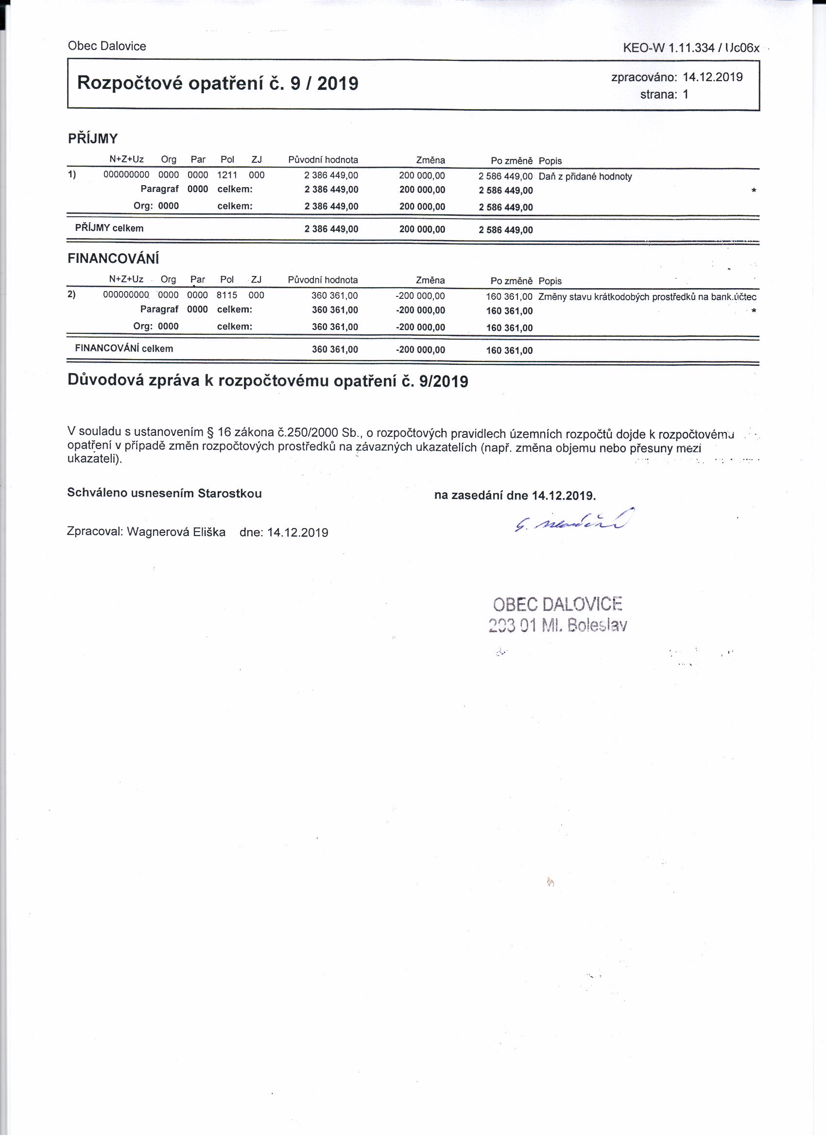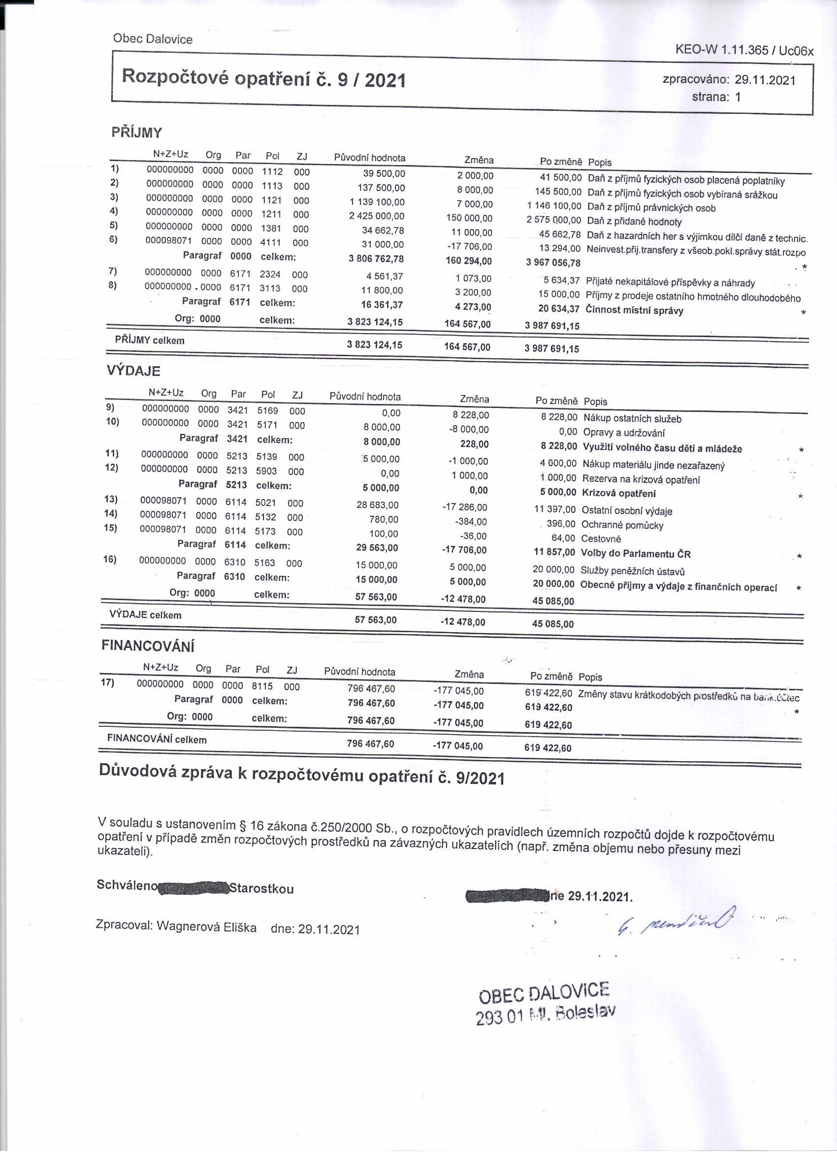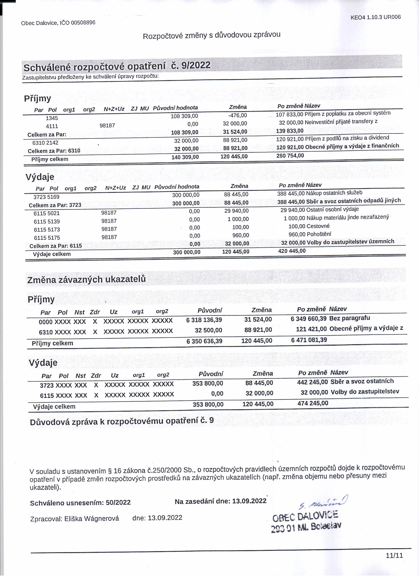 Rozpočtové opatření č. 9/2022 RO 9-2022 |