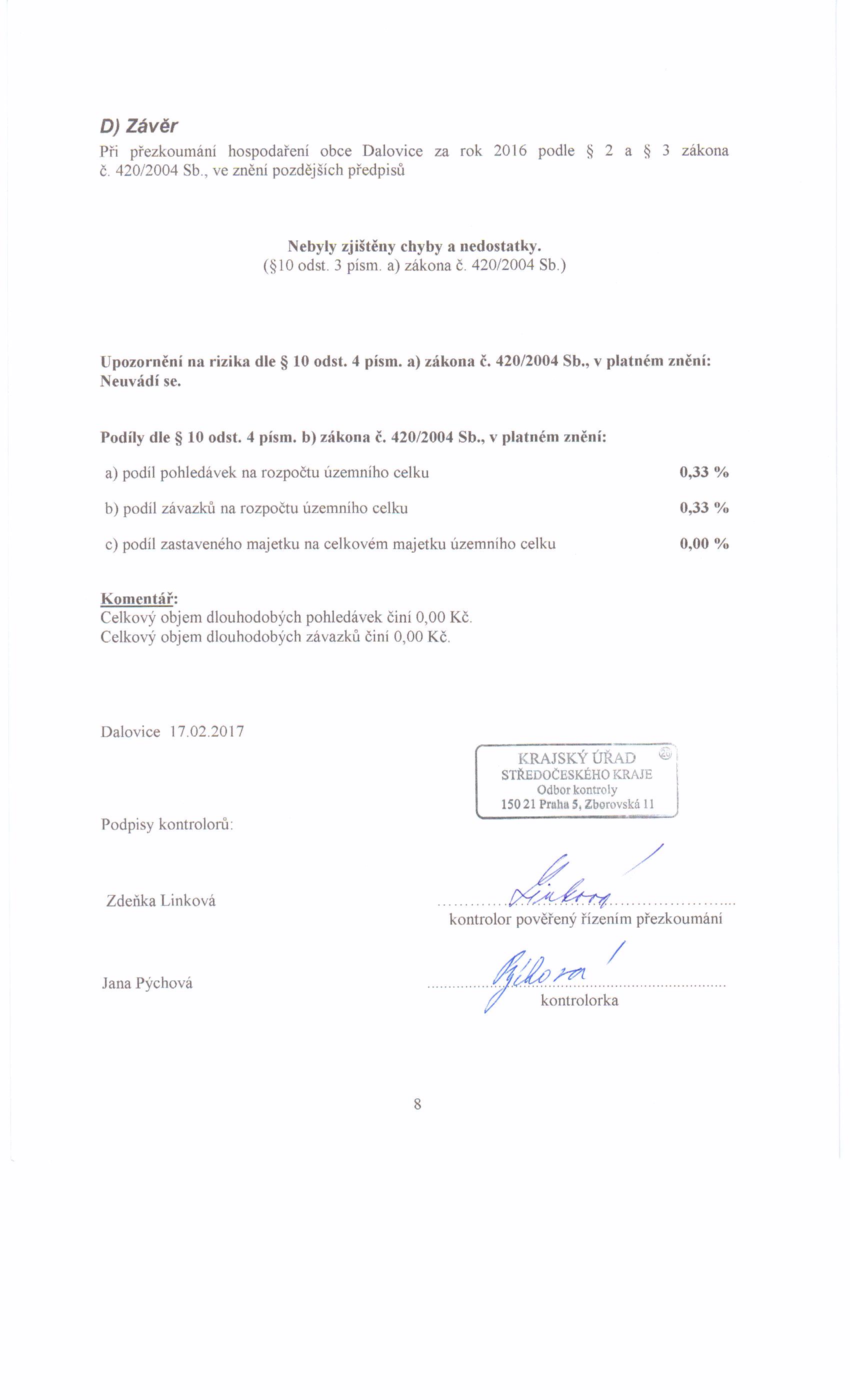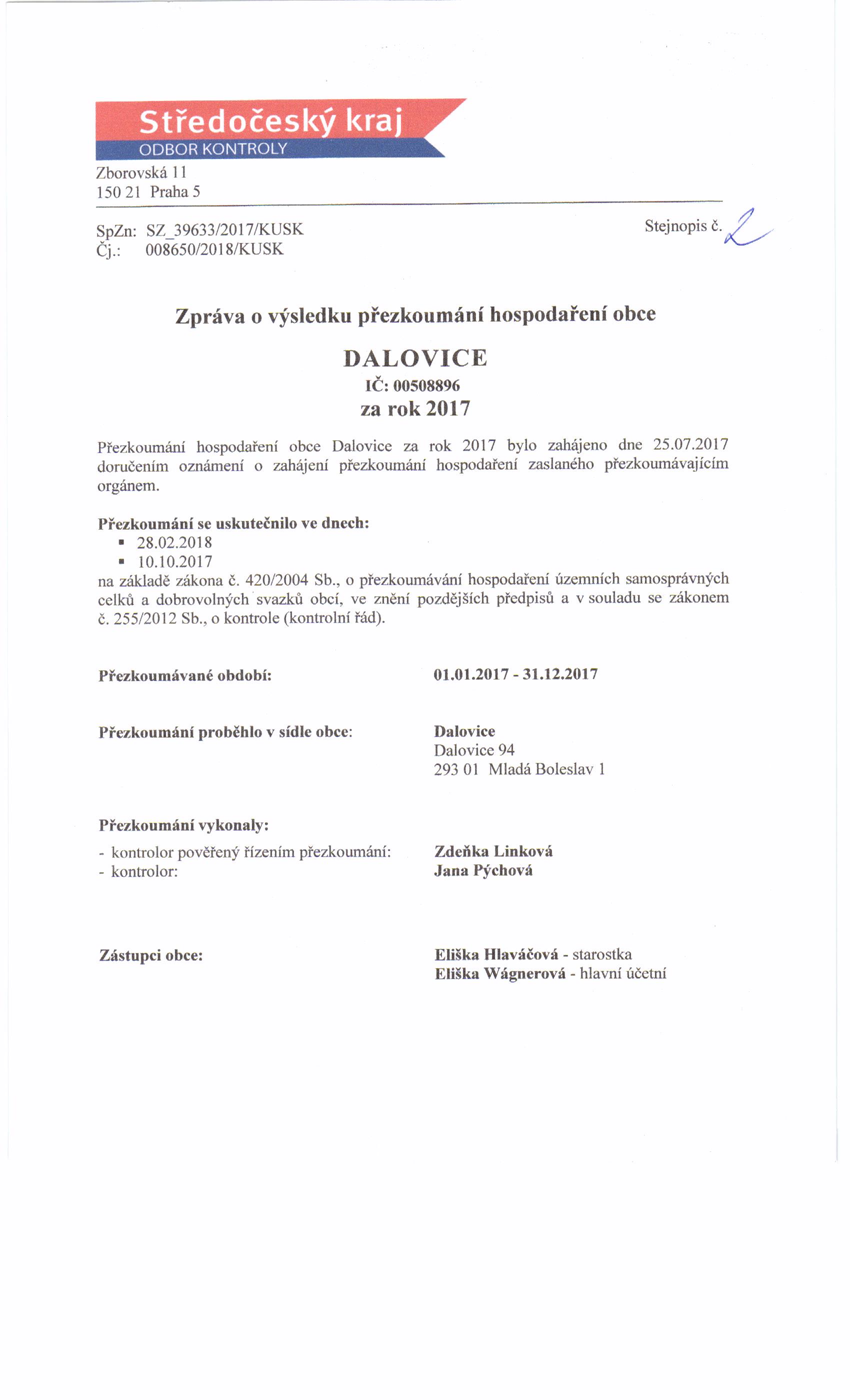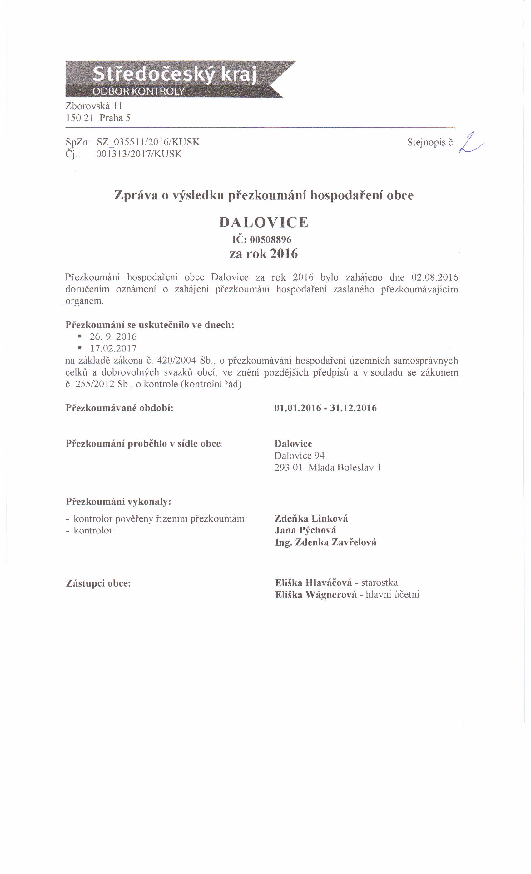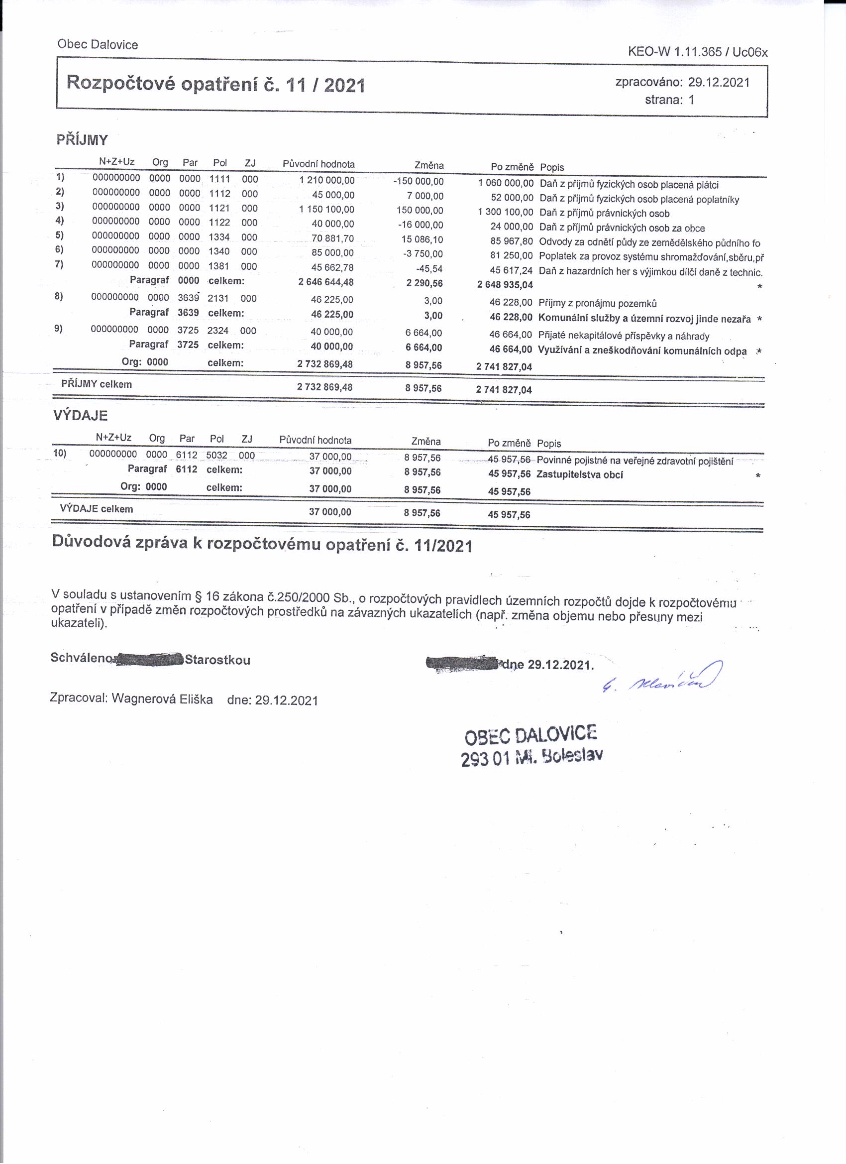 Zpráva o výsledku přezkoumání hospodaření obce r. 2021 Zpráva Dalovice (1.1.2021-31.12.2021 |
