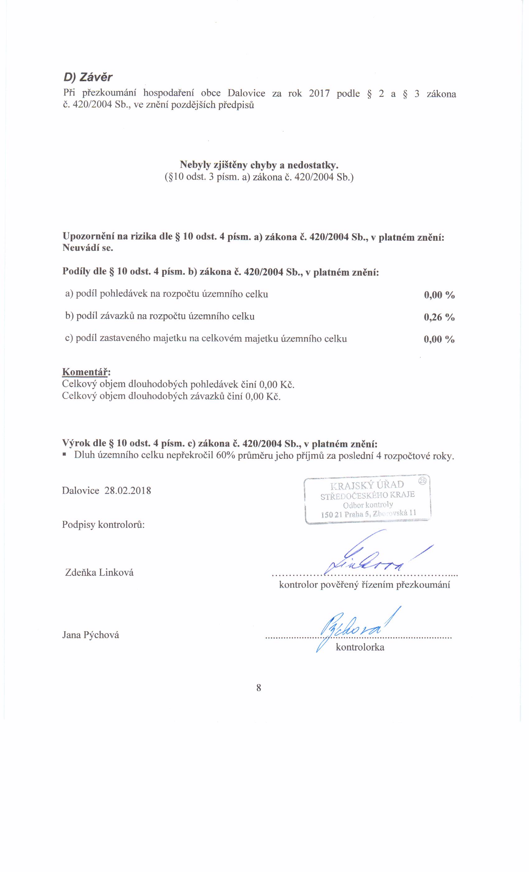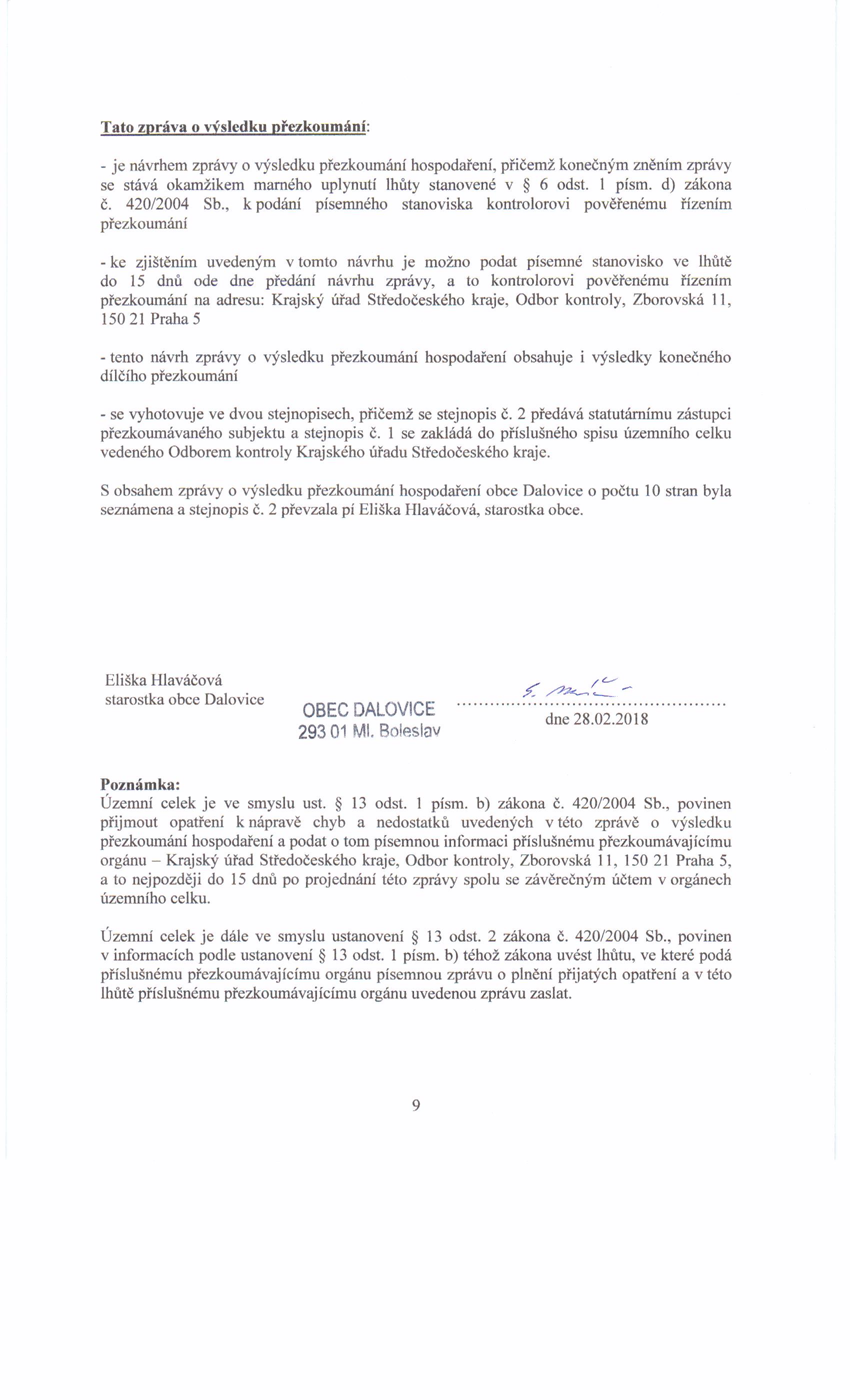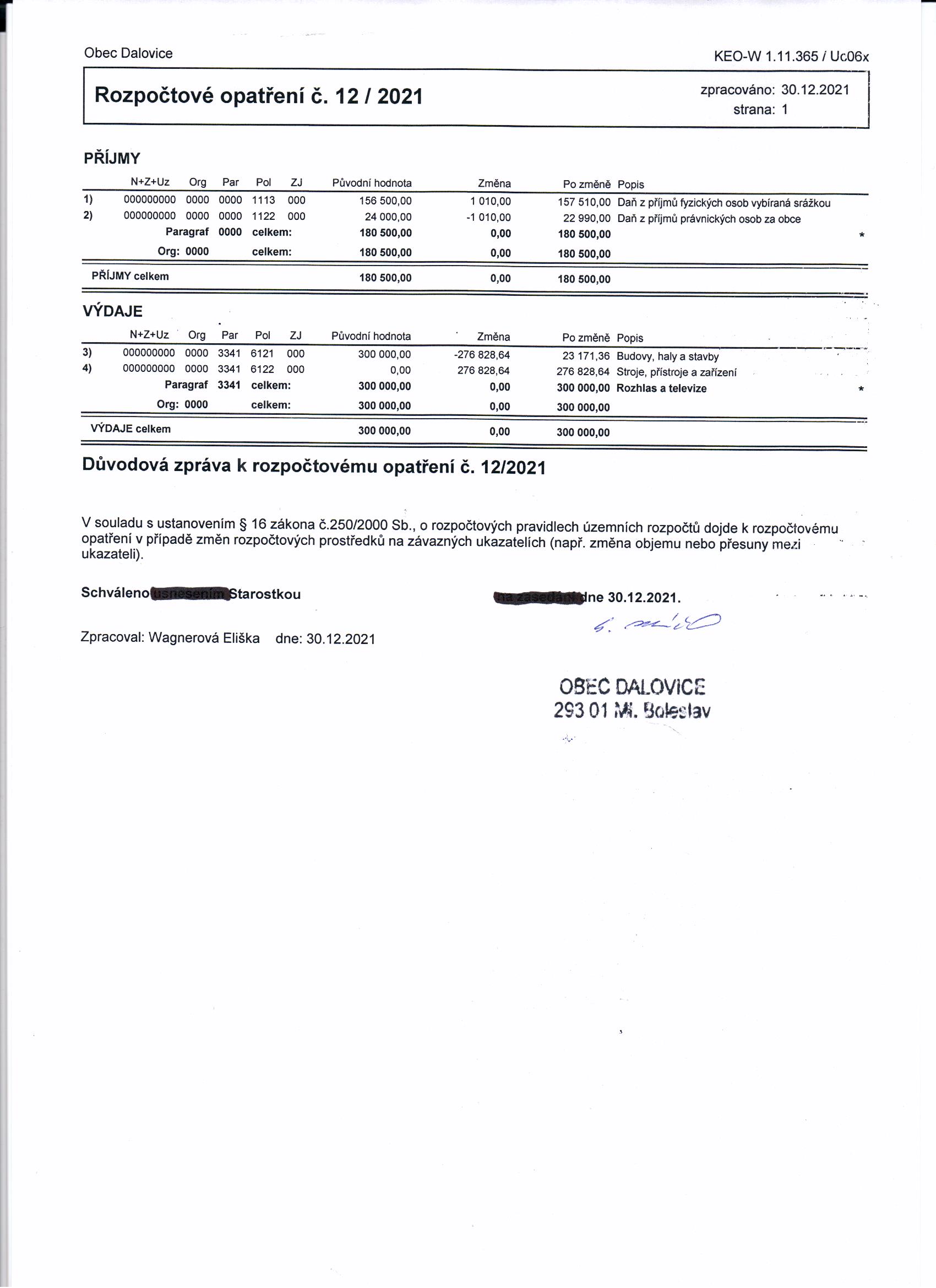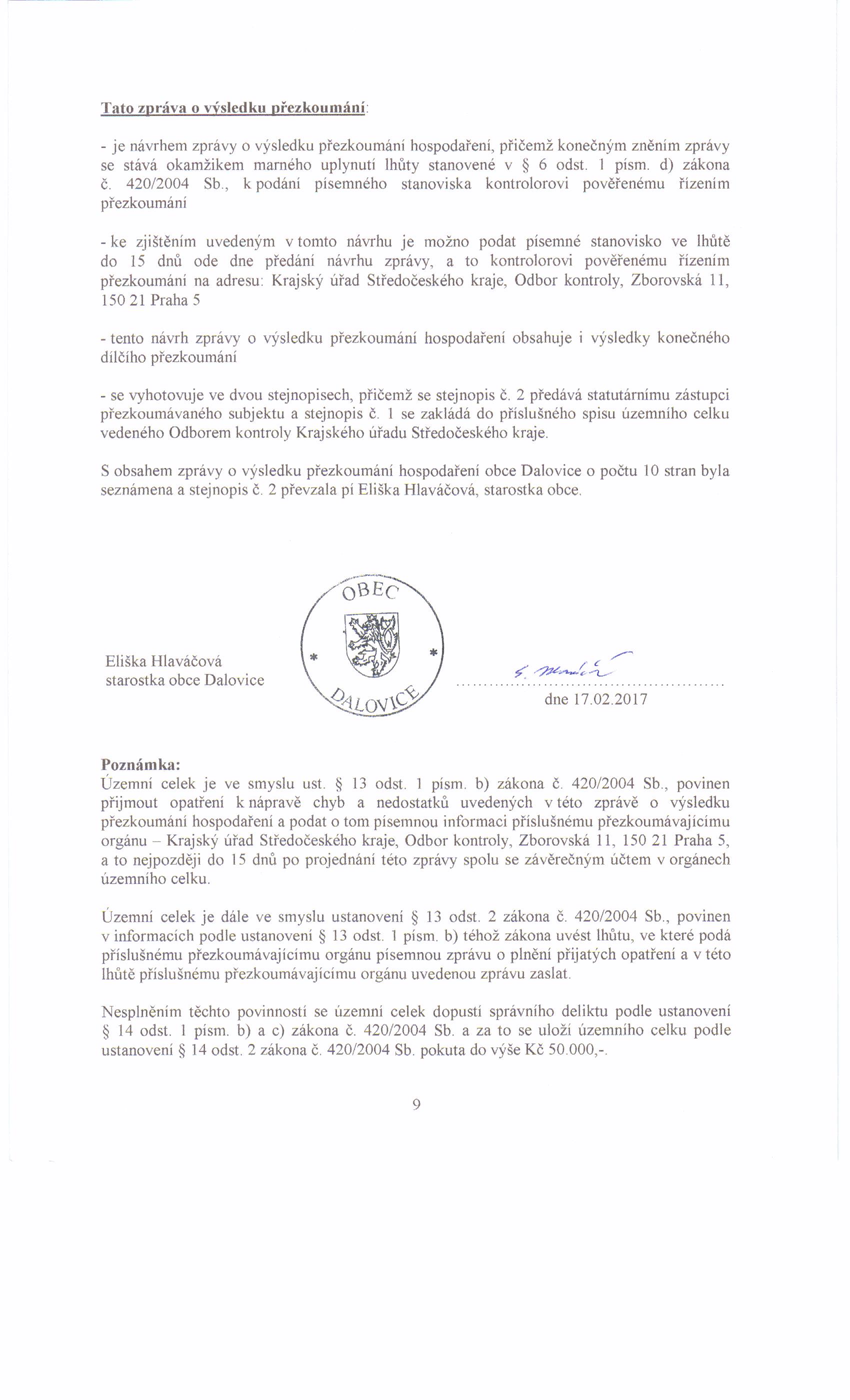 Zpráva o výsledku přezkoumání hospodaření obce r. 2021 Zpráva Dalovice (1.1.2021-31.12.2021 |
