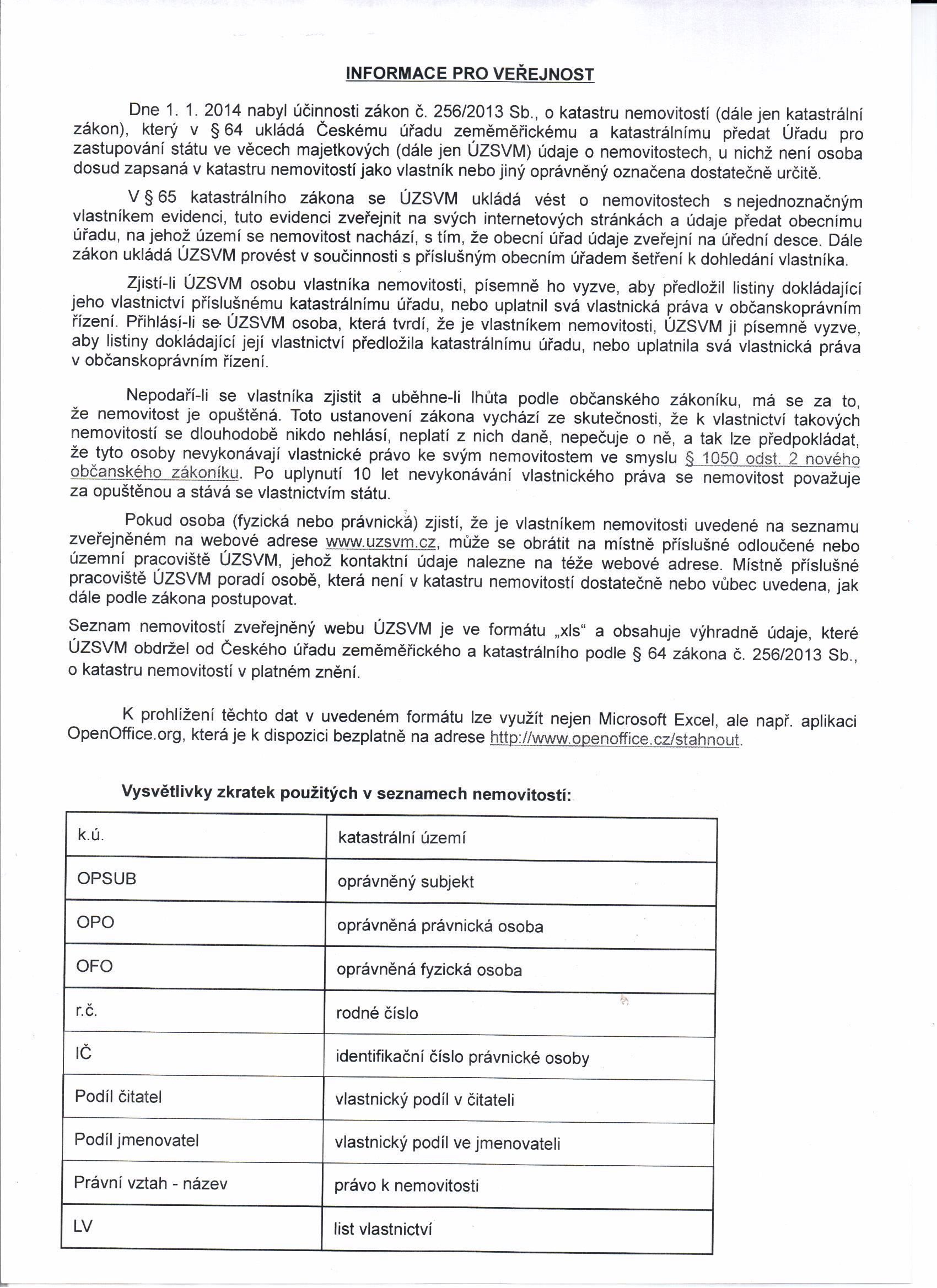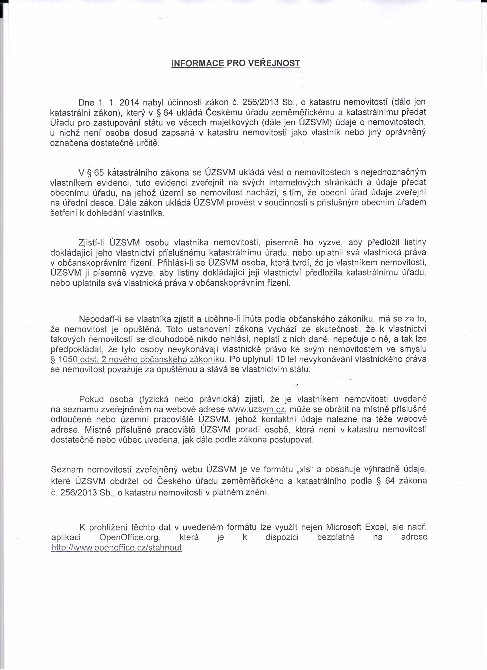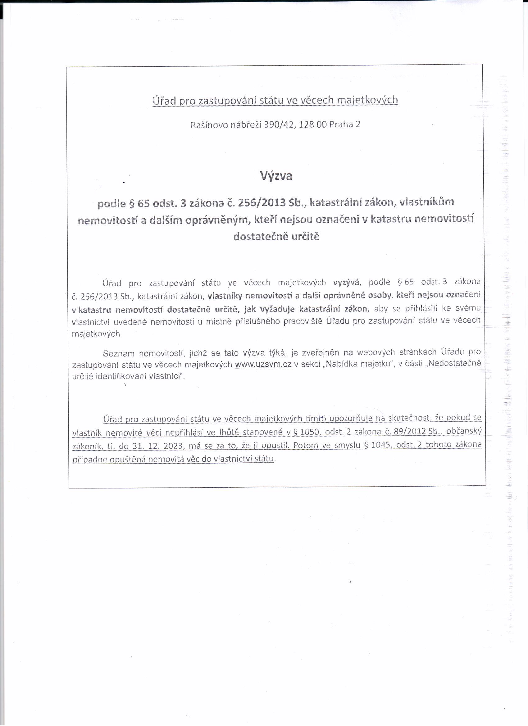 Výzva ÚZSVM - neznámý vlastník neznámý vlastník |