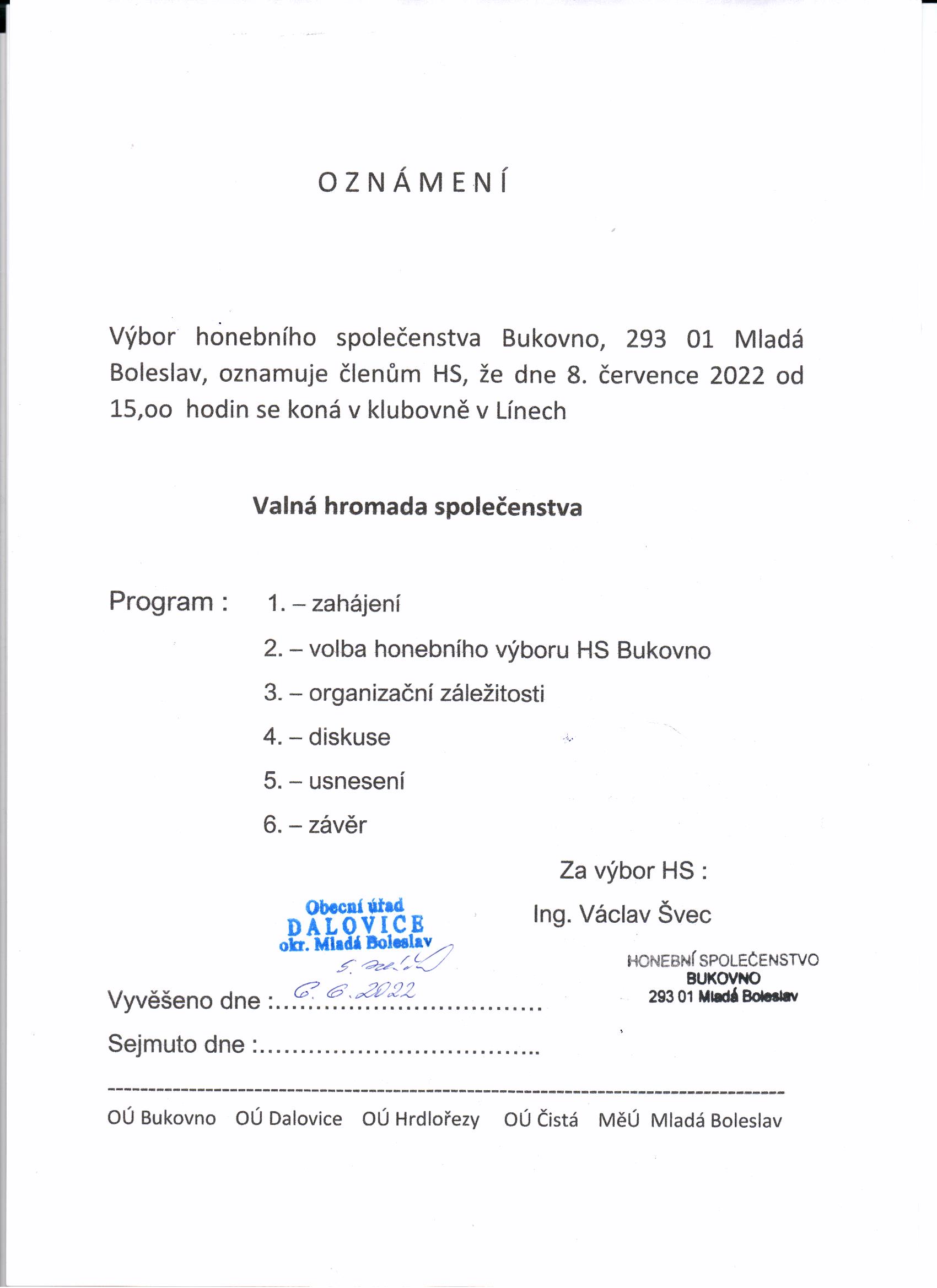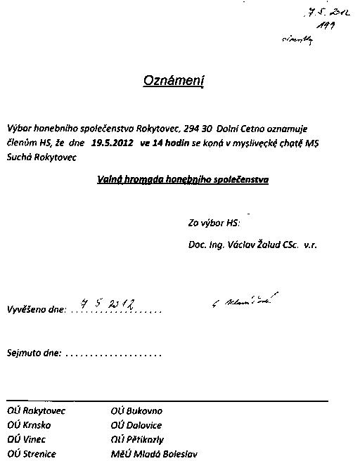Oznámení - valná hromada-Honební spol. Rokytovec Oznameni Honebni spol. Rokytovec |