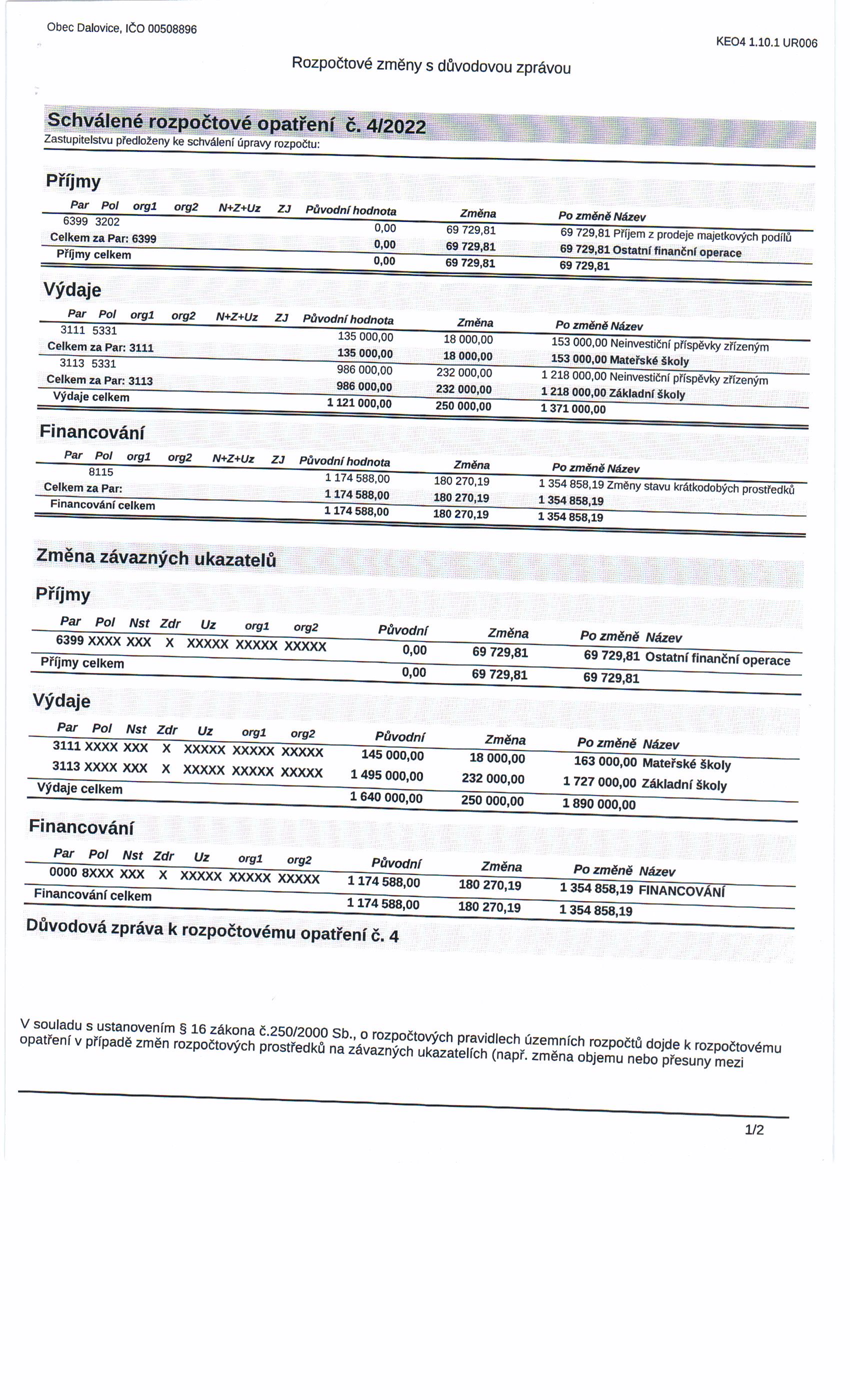 Rozpočtová změna č. 4/2022 RO 4-2022 |