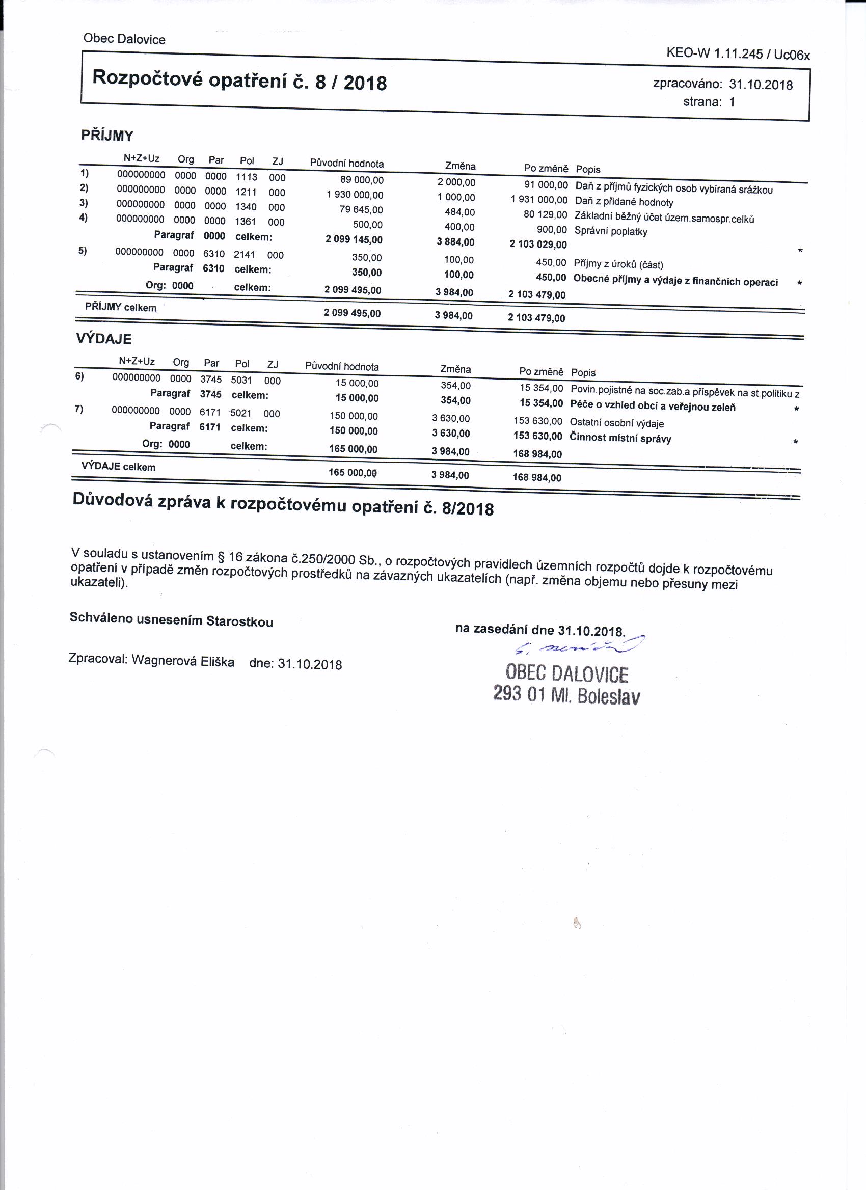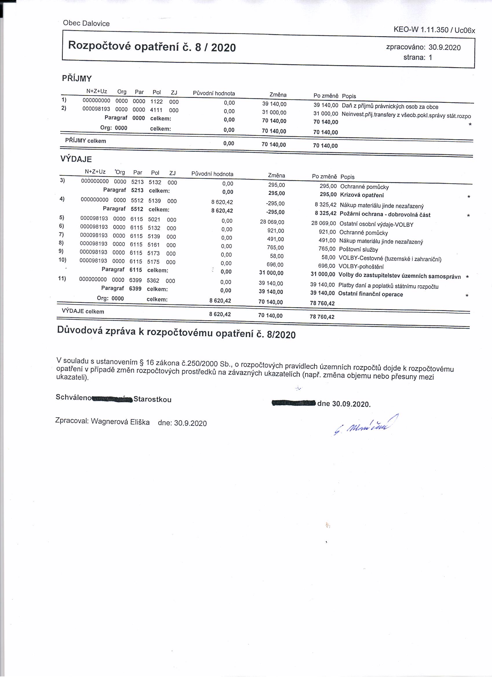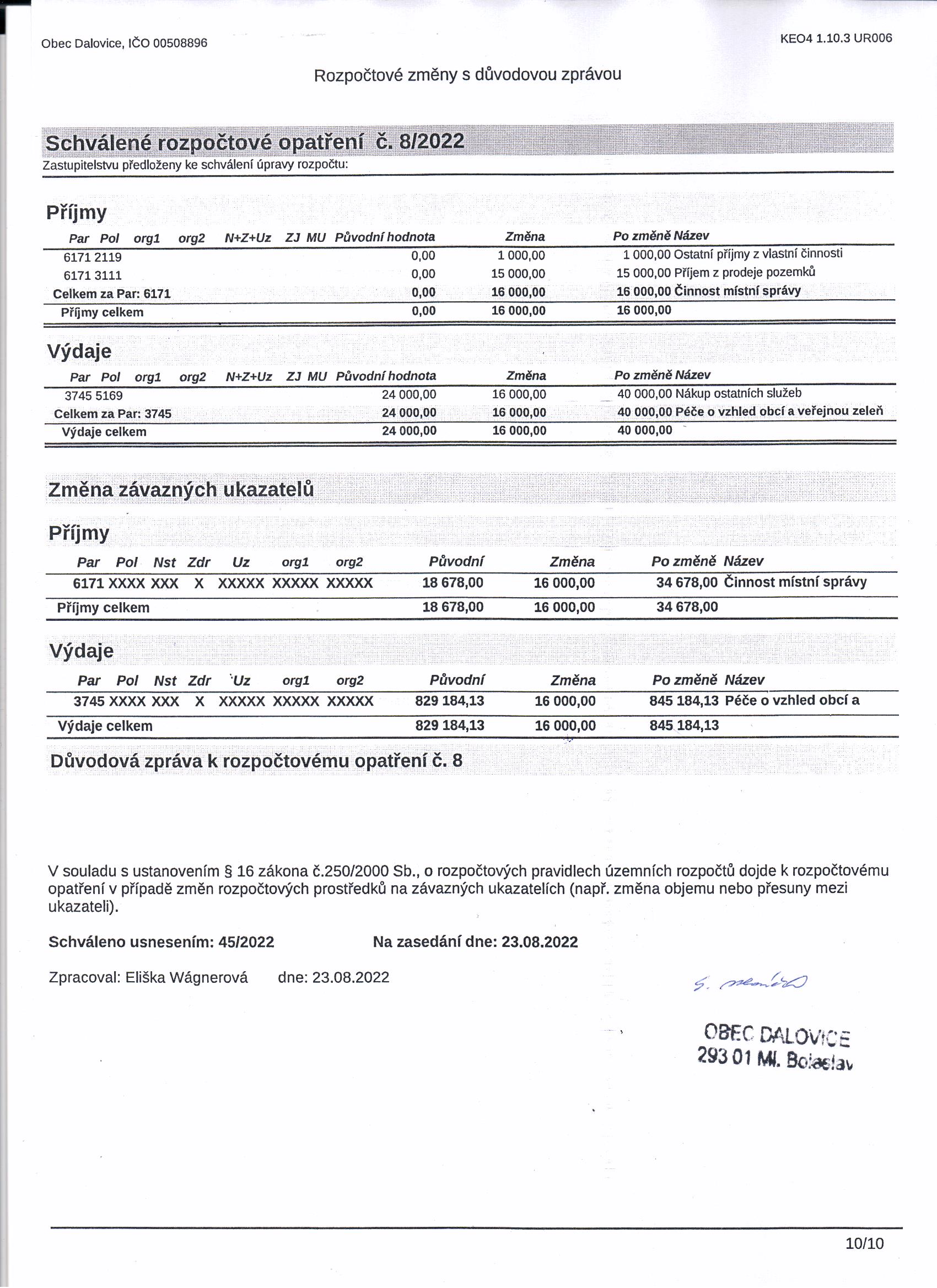 Rozpočtové opatření č. 8/2022 RO 8-2022 |