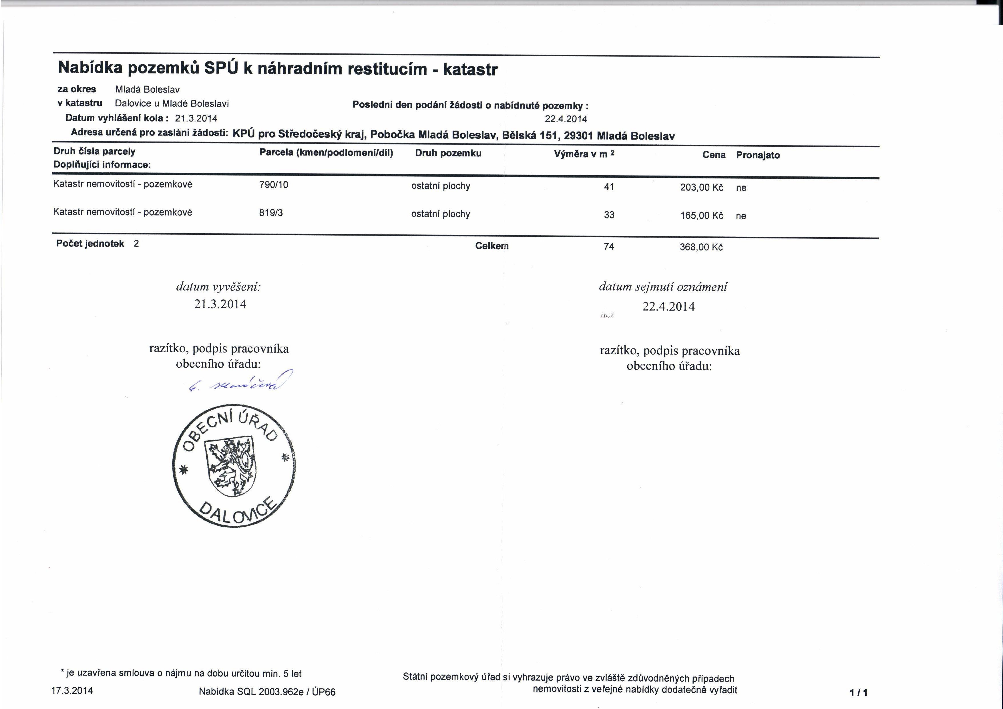 pronájem pozemků PF ČR Oznámení o pronájmu pozemků PF ČR |