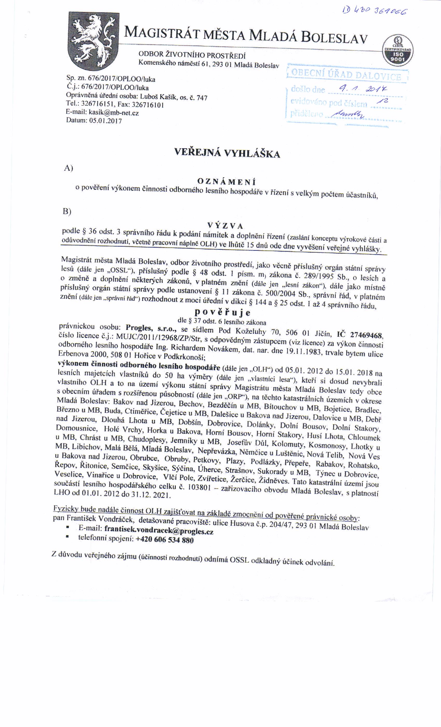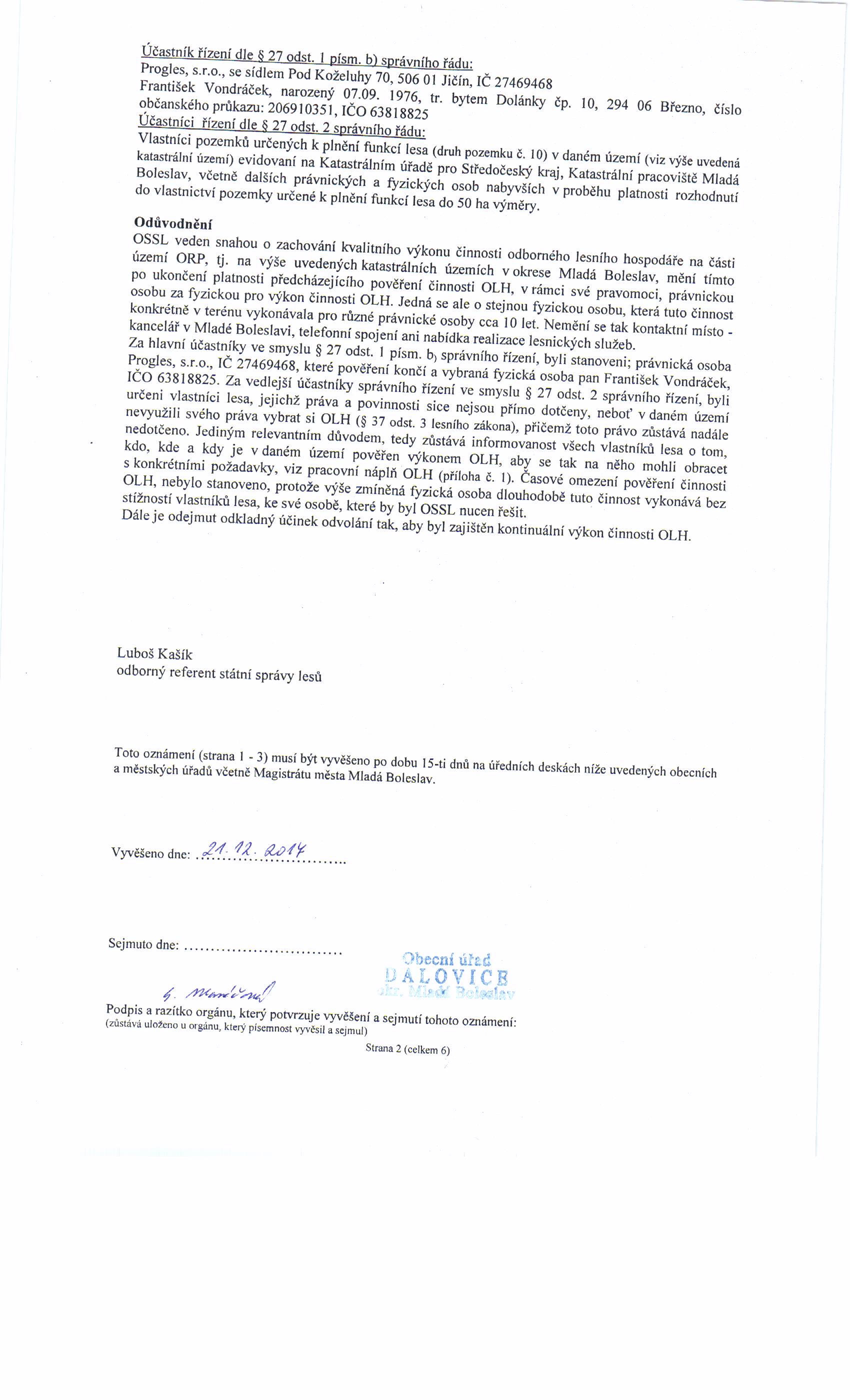 rozhodnutí - lesní hospodář rozhodnutí veř. vyhláškou - lesní hospodář |