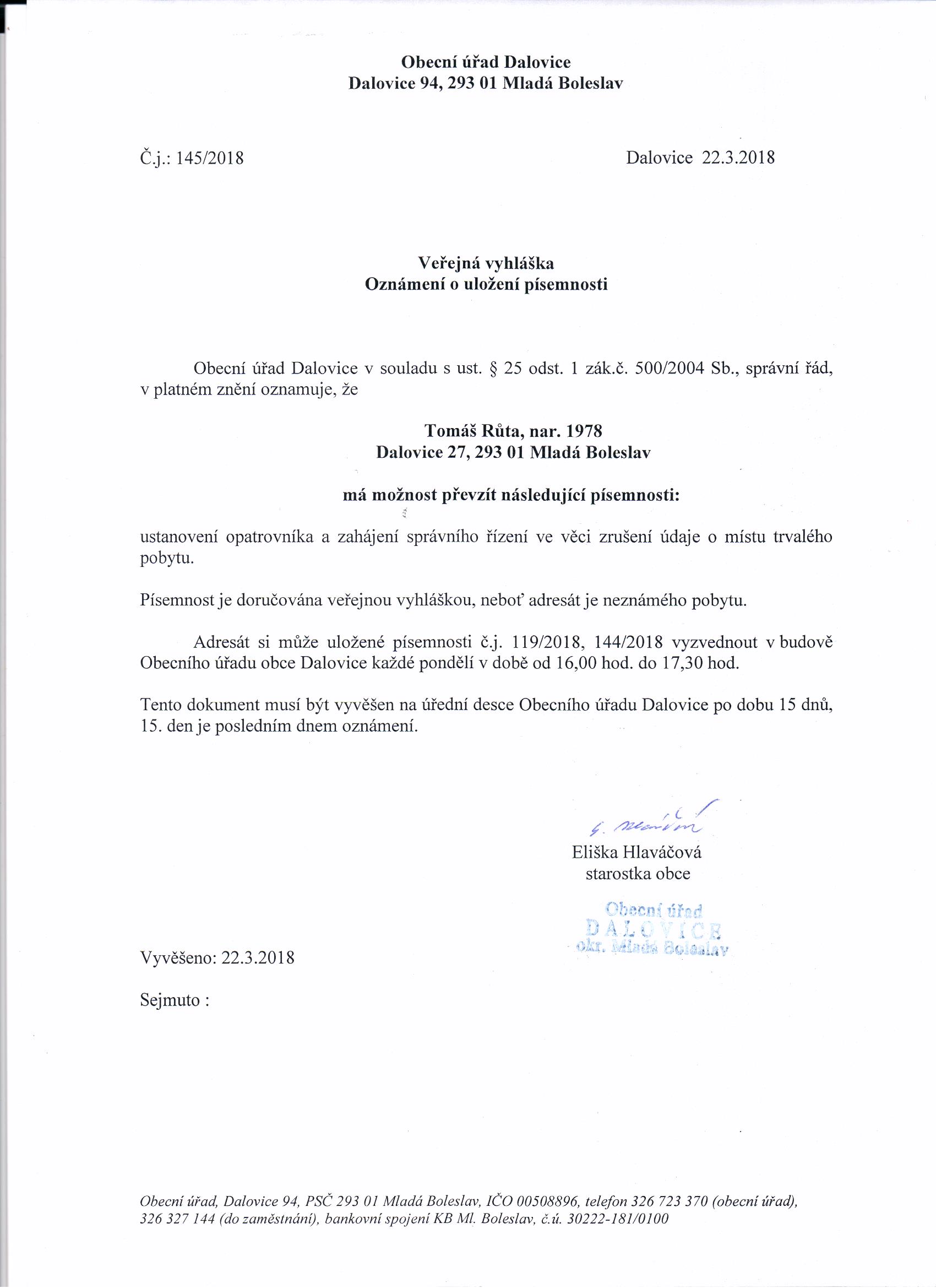 oznámení o uložení písemnosti oznámení o uložení písemnosti |