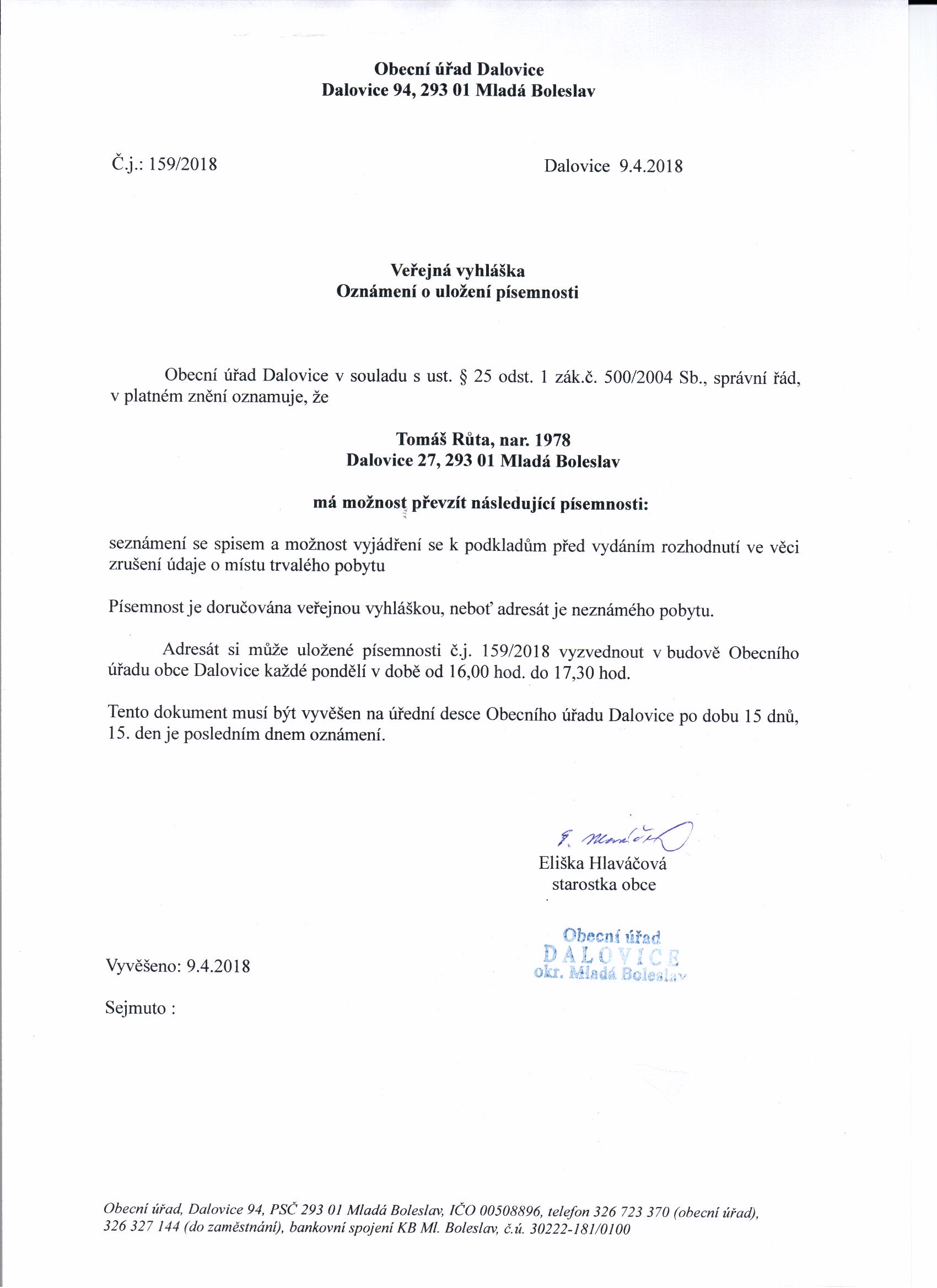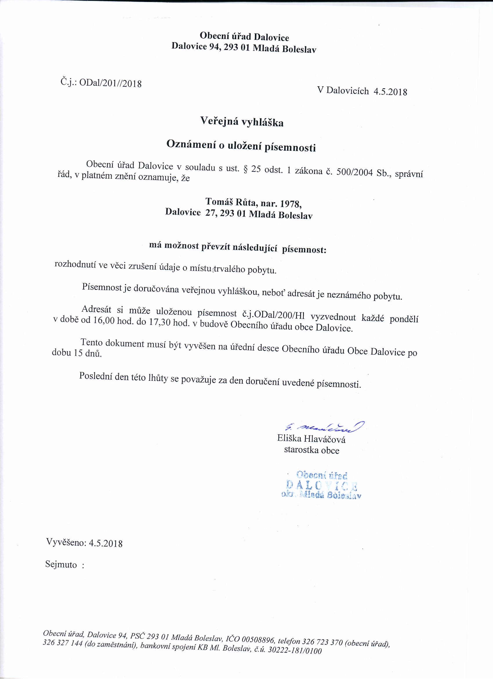 Oznámení veřejnou vyhláškou Oznámení veřejnou vyhláškou |