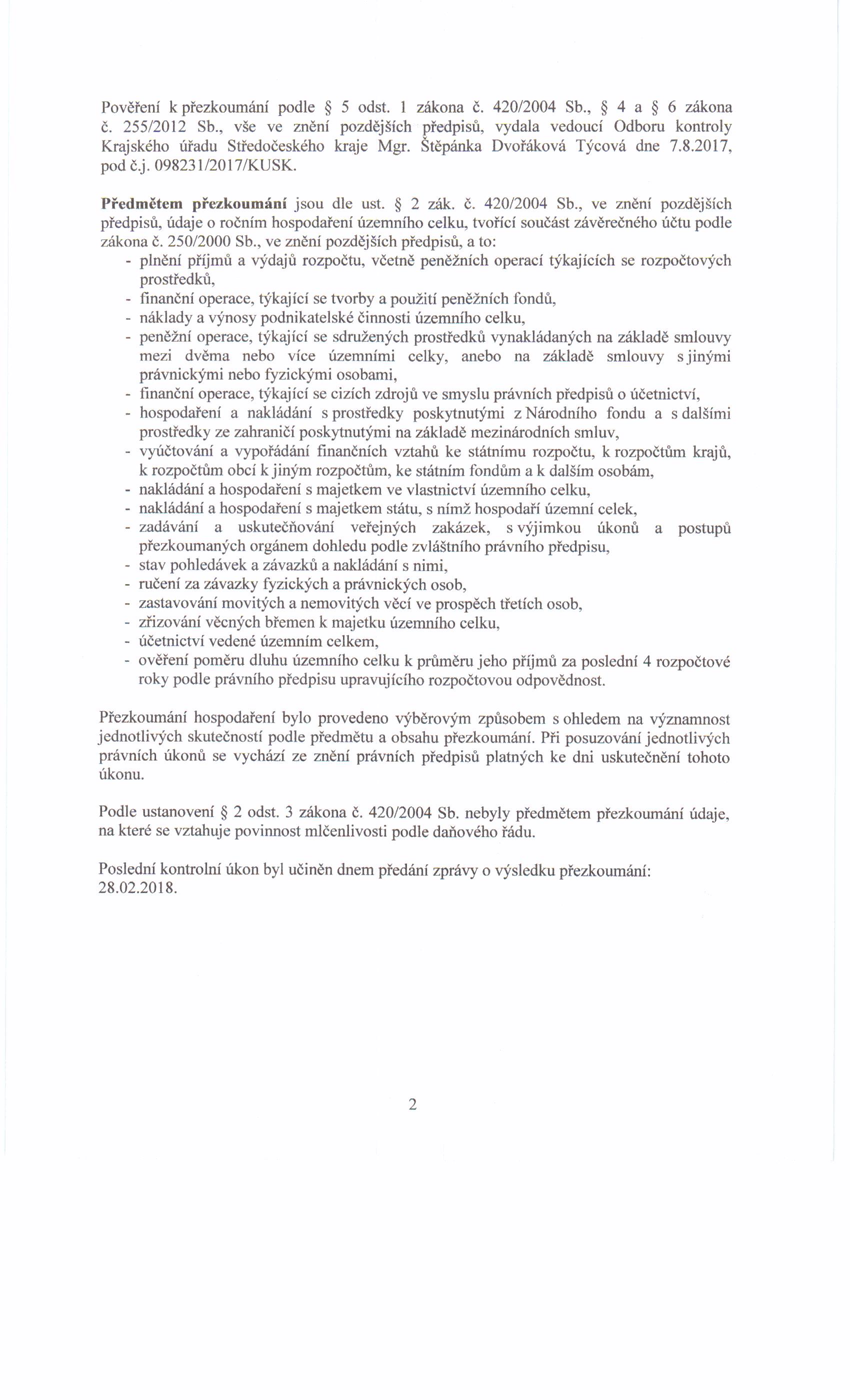 Zpráva o výsledku přezkoumání hospodaření obce r.2021 Zprava o vysledku hospodareni obce 2021 |